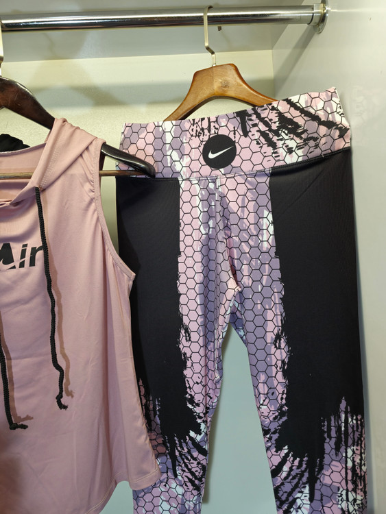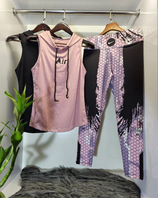 ست ورزشی زنانه تاپ شلوار مدل نایکی | تاپ حلقه ای کلاهدار و لگ کمرگنی |
