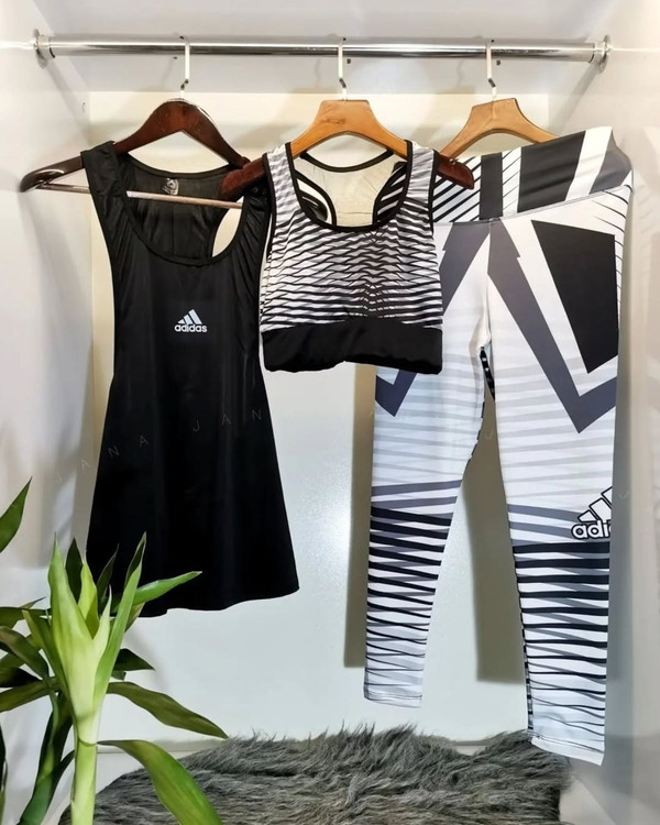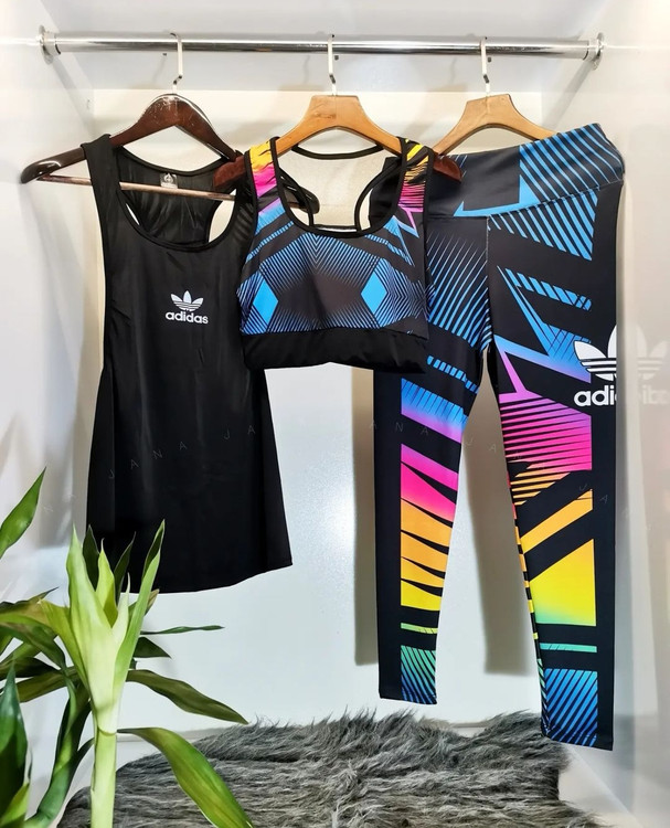 ست سه تکه لباس ورزشی زنانه طرحدار مدل آدیداس | نیمتنه ، لگ ، کاور تاپ |