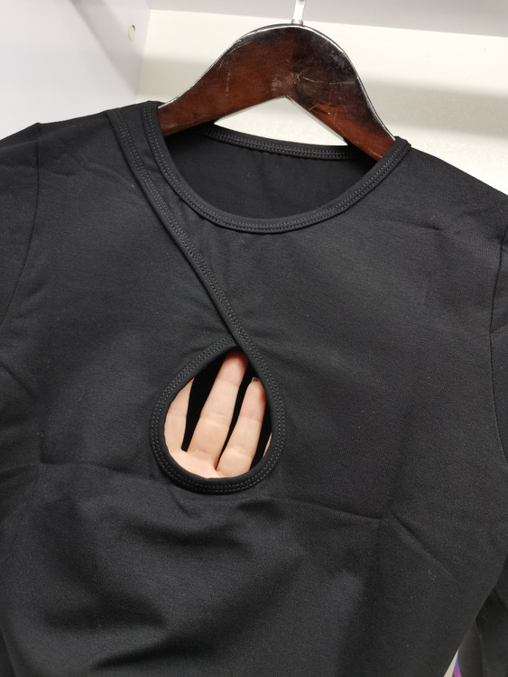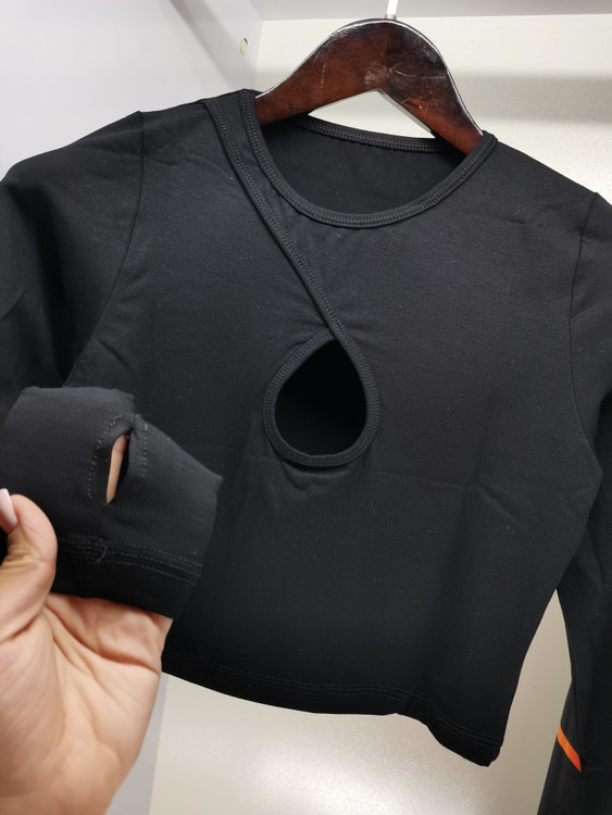 کراپ یقه گرد ، آستین بلند فینگردار میباشد مدل جلوی کراپ ترکیبی با تور و پشتش حلقه ای✔️