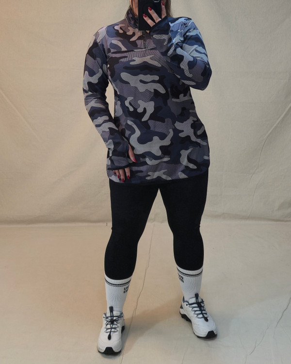 مانتوشلوار ورزشی زنانه مدل چریکی | تونیک نیم زیپ ، یقه ایستاده ، آستین فینگردار و شلوار لگ |