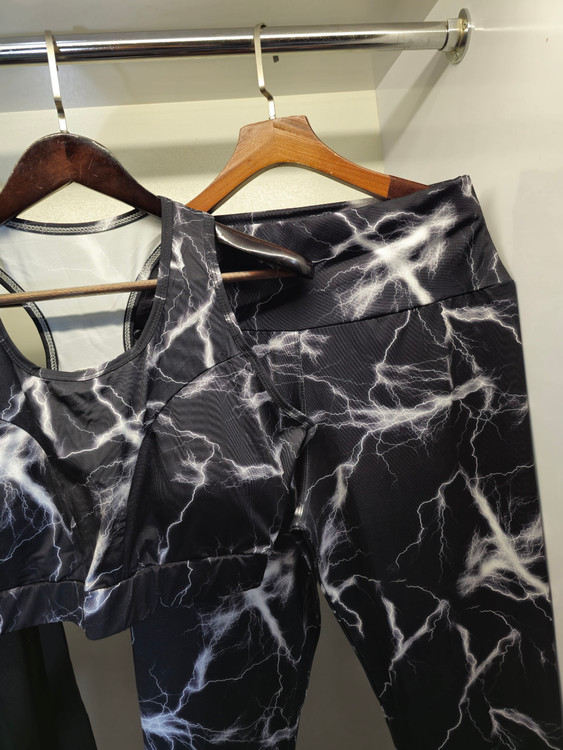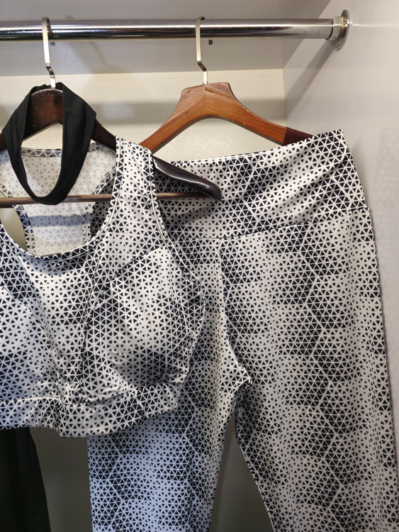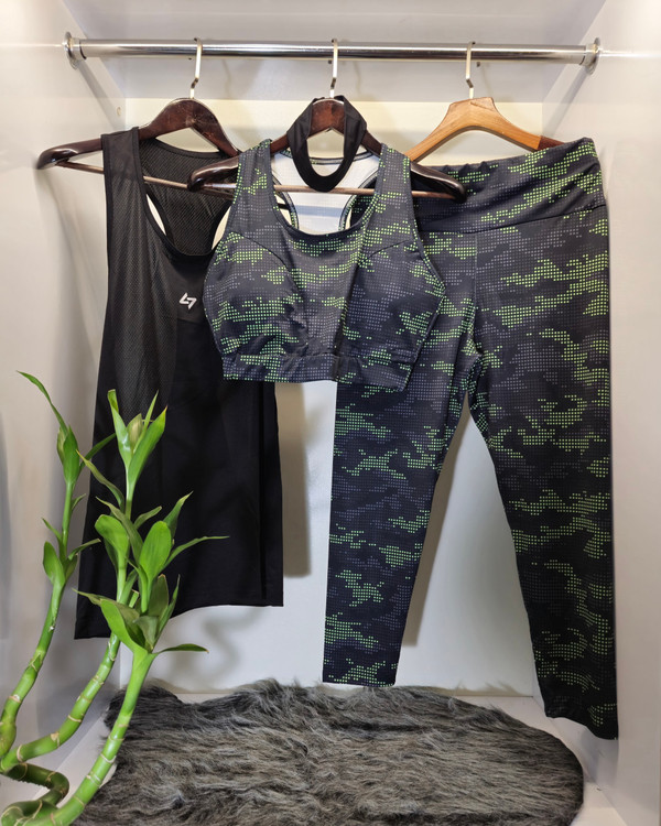 ست سه تکه ورزشی زنانه سایزبزرگ مدل طرحدار | نیمتنه ، لگ ، کاور تاپ |