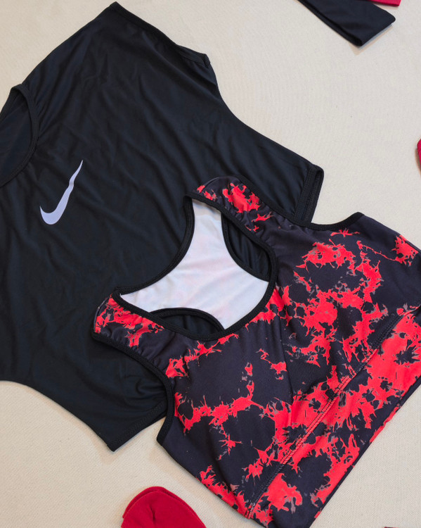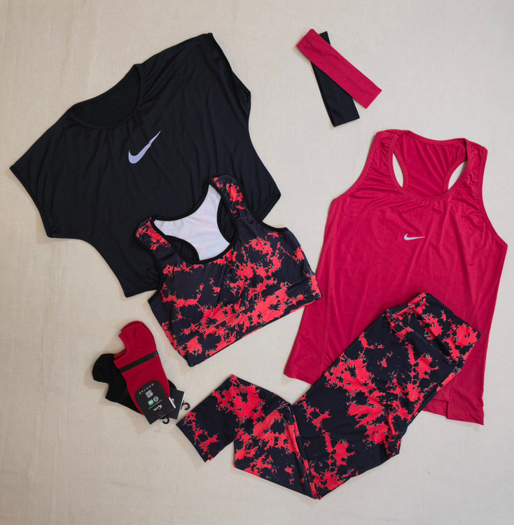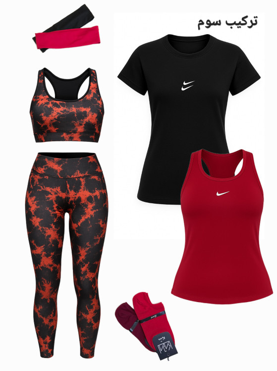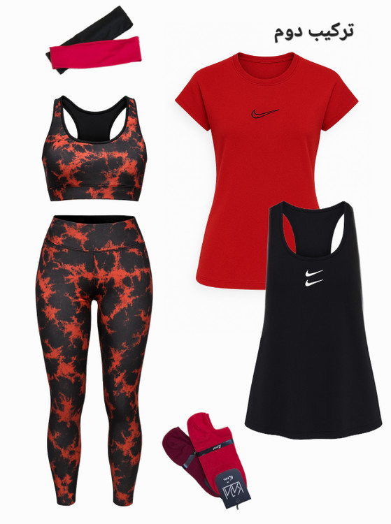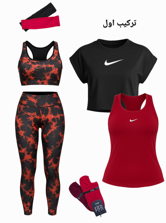 لباس ورزشی زنانه سایز ۳۶ الی ۴۲ | شش تکه اقتصادی | نیمتنه، لگ ، تاپ ، کراپ ، هدبند ، جوراب |