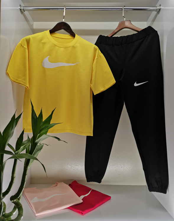 ست تیشرت شلوار زنانه اسپرت بیرونی مدل نایکی | تیشرت لش طور و شلوار اسلش |