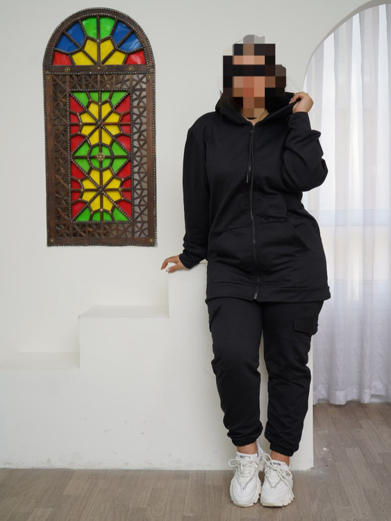 این ست ترکیبی از سویشرت کلاهدار و آستین مچی با قد بلند و شلوار اسلش میباشد ✔️