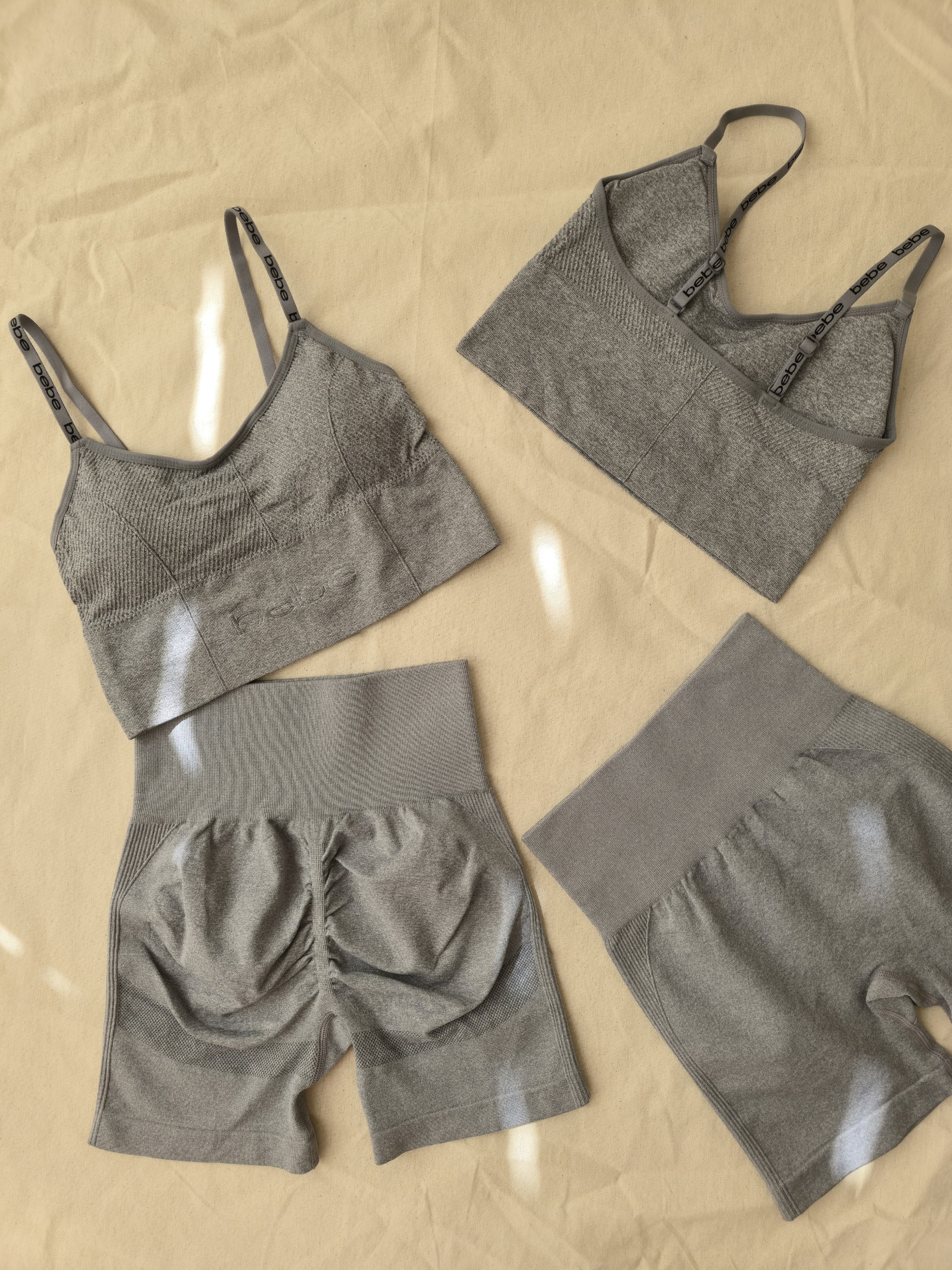لباس ورزشی زنانه سیملس وارداتی سایز ۳۴ الی ۴۶ / نیمتنه و شورتک پشت چین دار