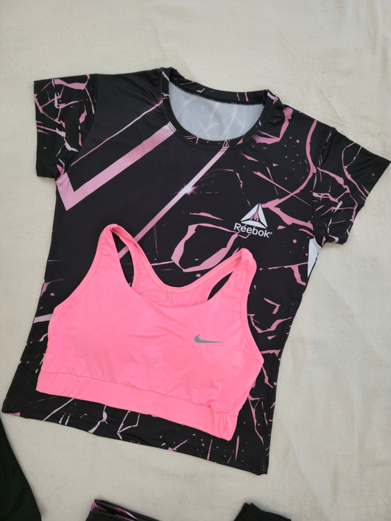 لباس ورزشی زنانه سایز ۳۴ الی ۴۲ | ۶ تکه اقتصادی | نیمتنه، لگ ، تیشرت ، تاپ ، جوراب ، هدبند |