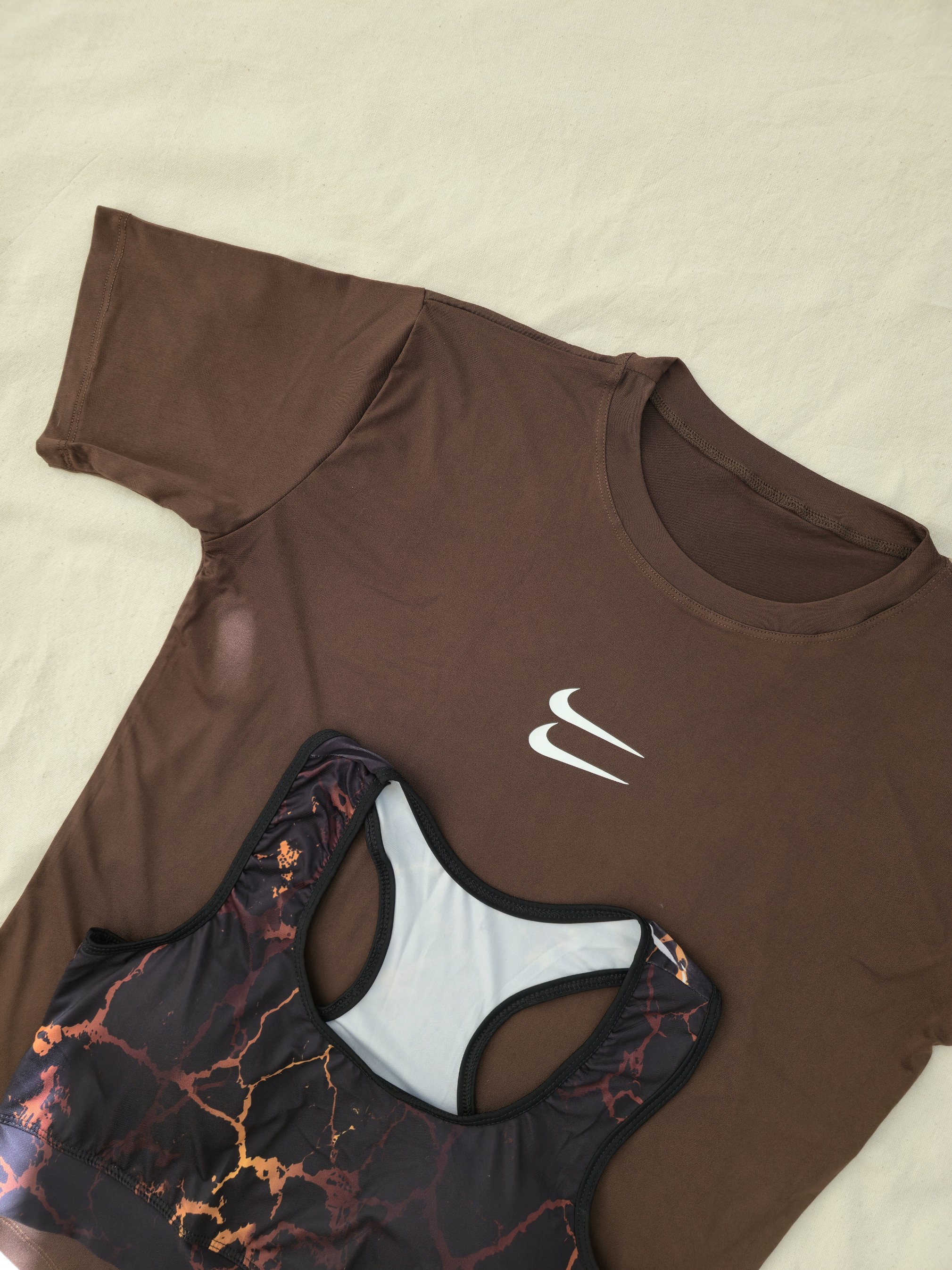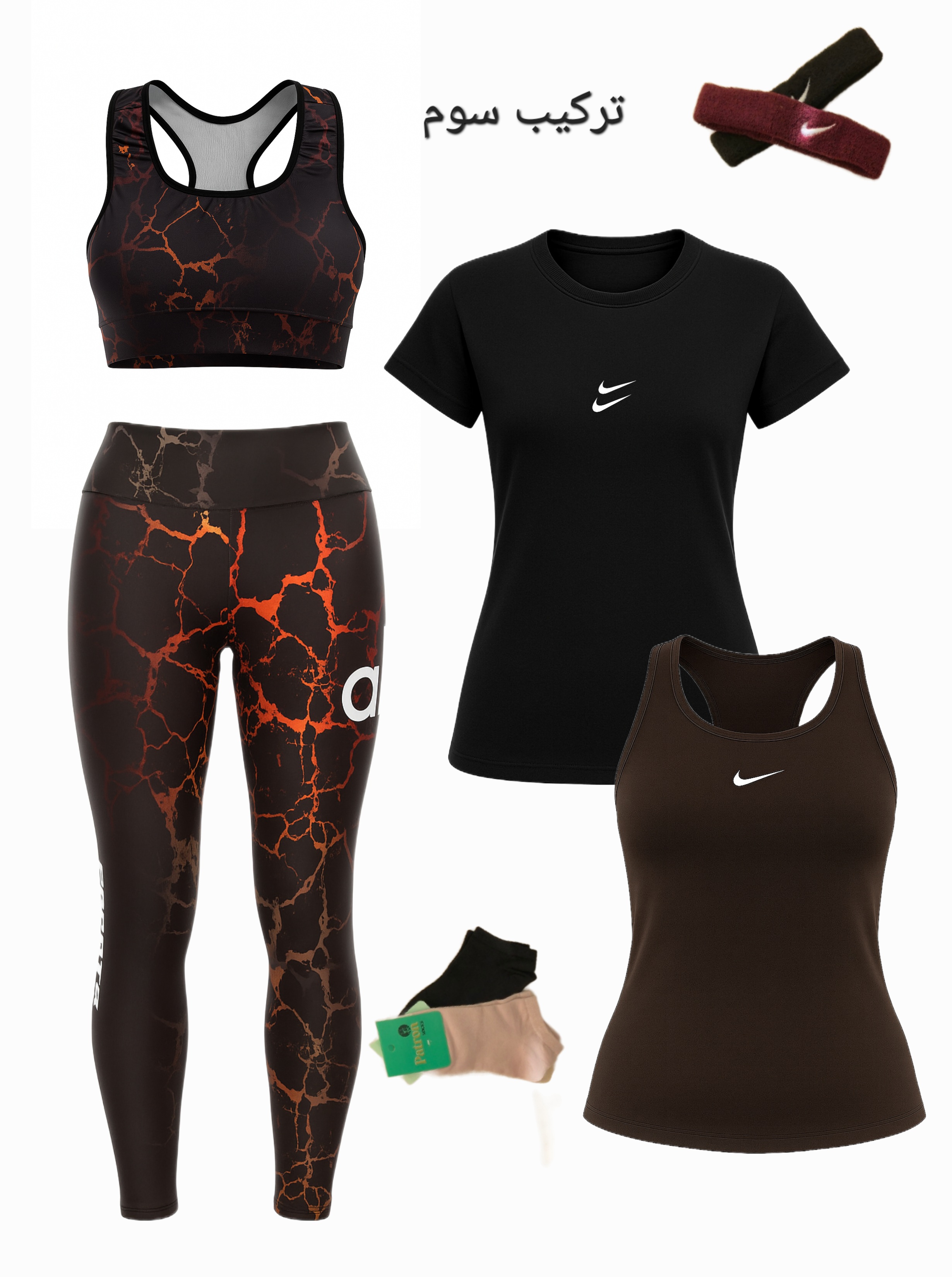 لباس ورزشی زنانه سایزبزرگ ۴۲ الی ۴۸ | ۶ تکه اقتصادی | نیمتنه، لگ ، کاور تاپ ، تیشرت ، جوراب ، هدبند |