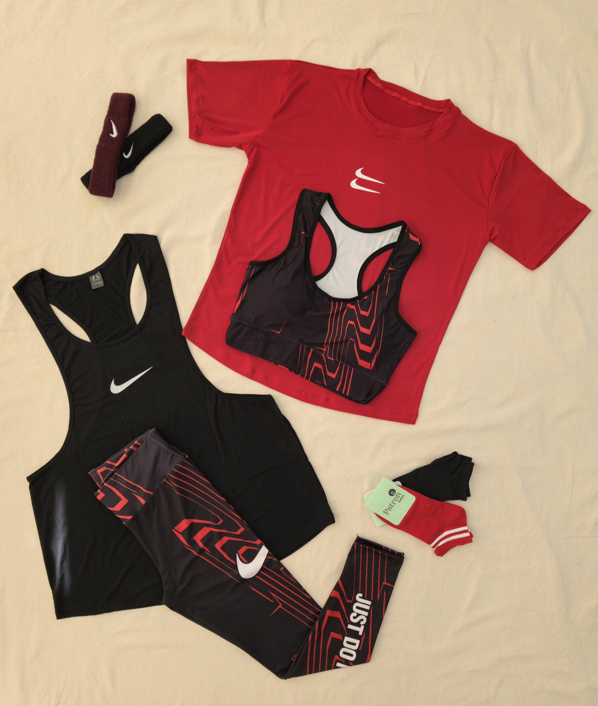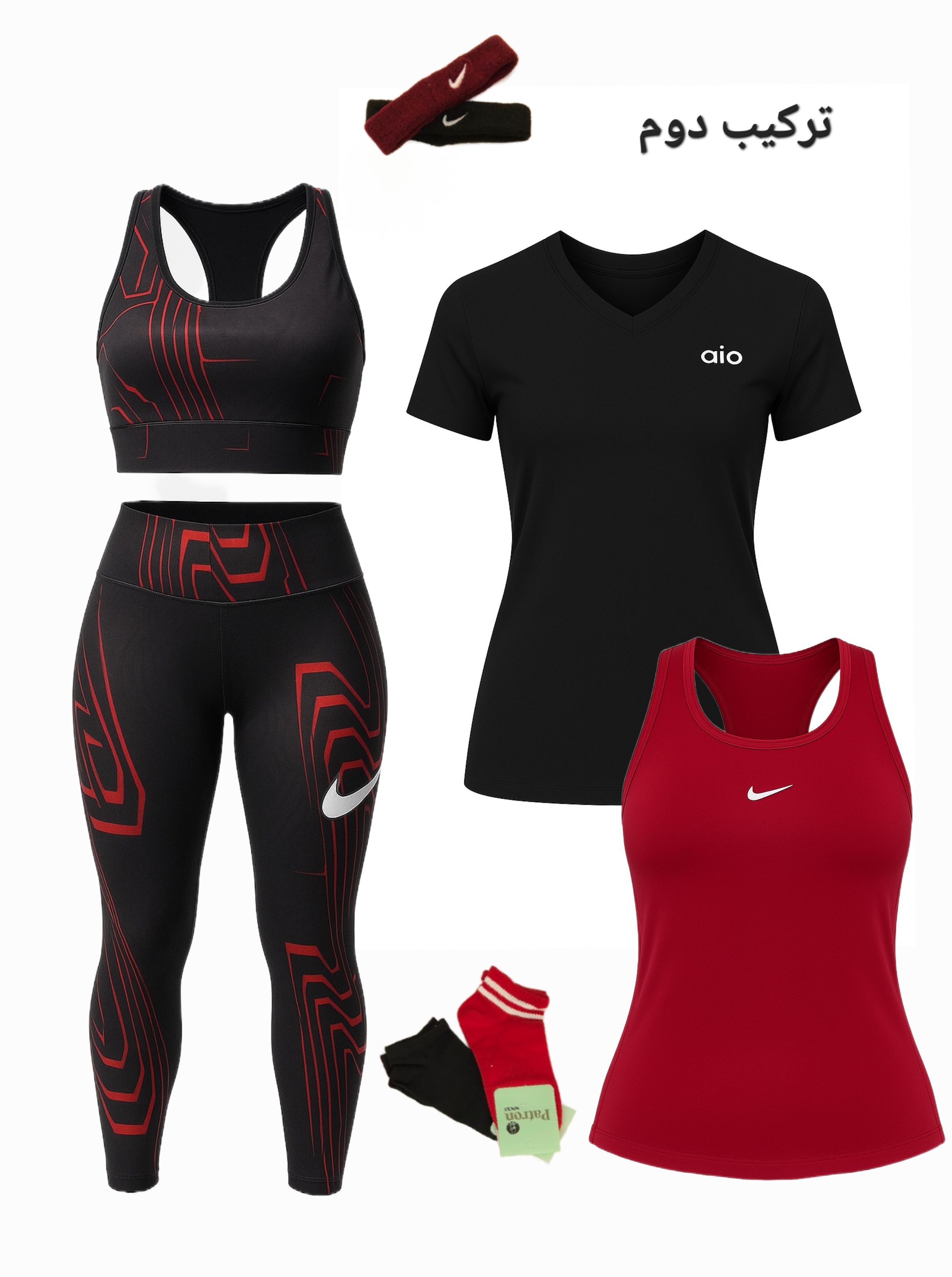 لباس ورزشی زنانه سایز ۳۶ الی ۴۲ | ۶ تکه اقتصادی | نیمتنه، لگ ، تاپ ، تیشرت ، جوراب ، هدبند |