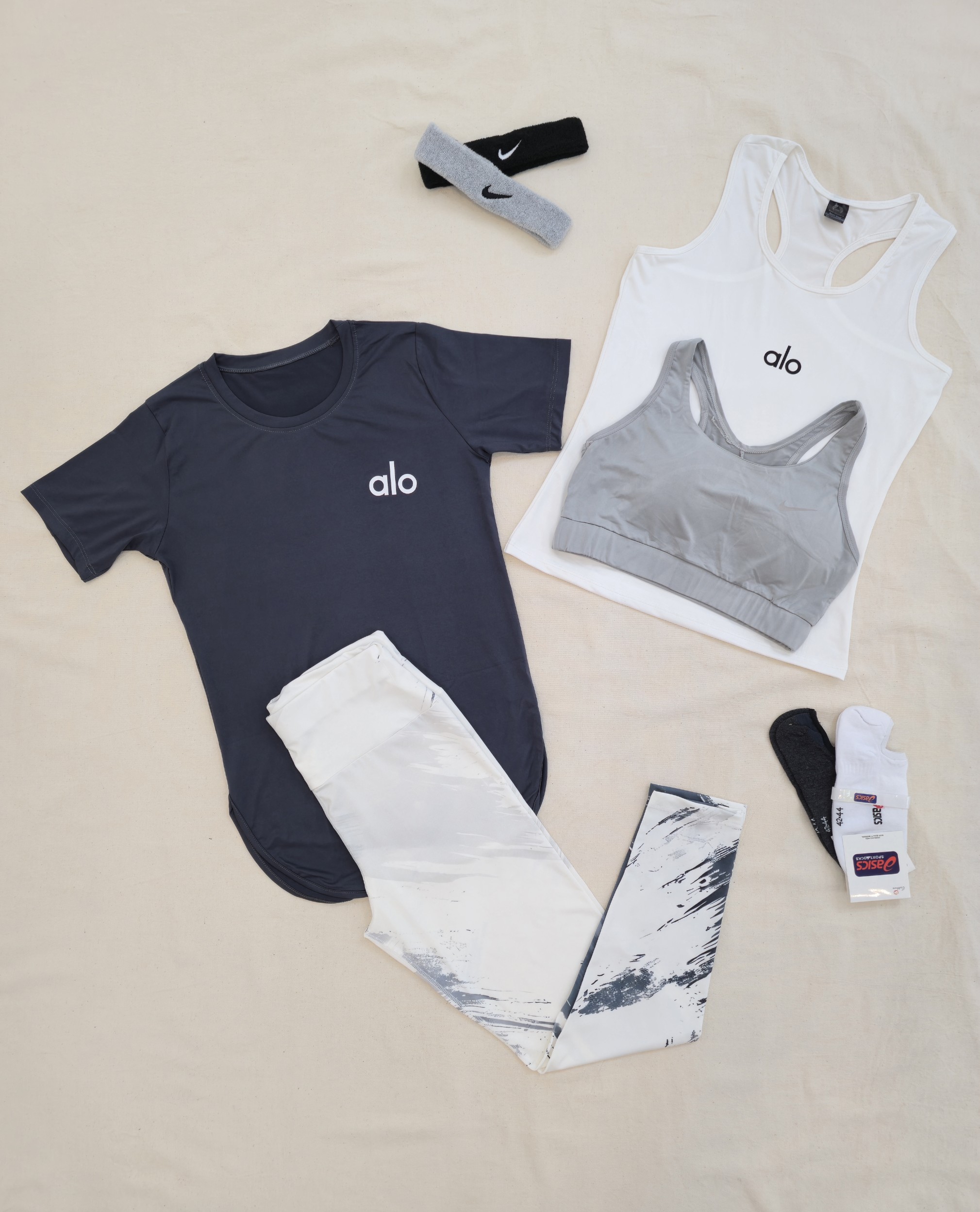 لباس ورزشی زنانه سایز ۳۶ الی ۴۲ | ۶ تکه اقتصادی | نیمتنه، لگ ، بلوز آستین بلند ، تاپ ، تیشرت ، جوراب ، هدبند |