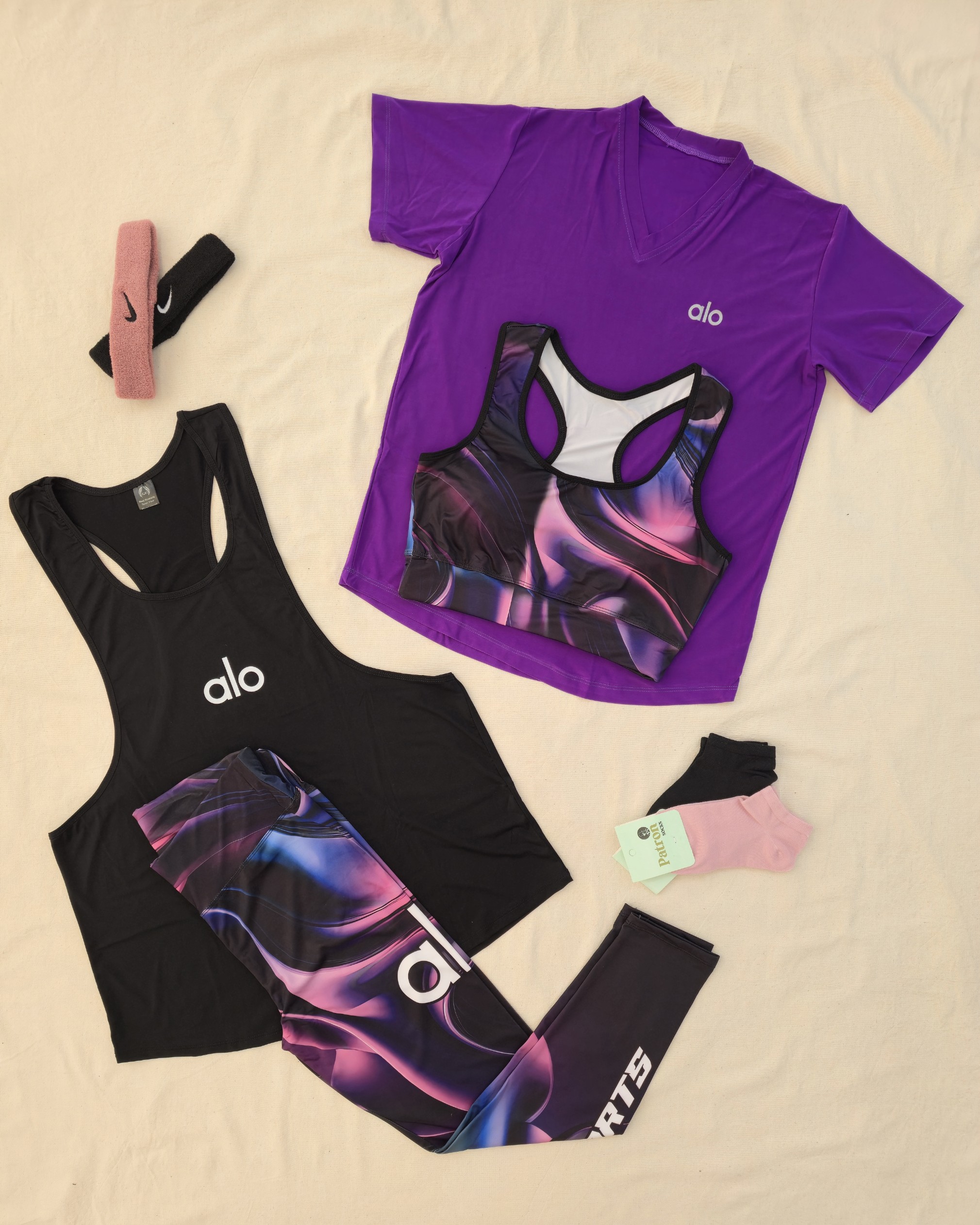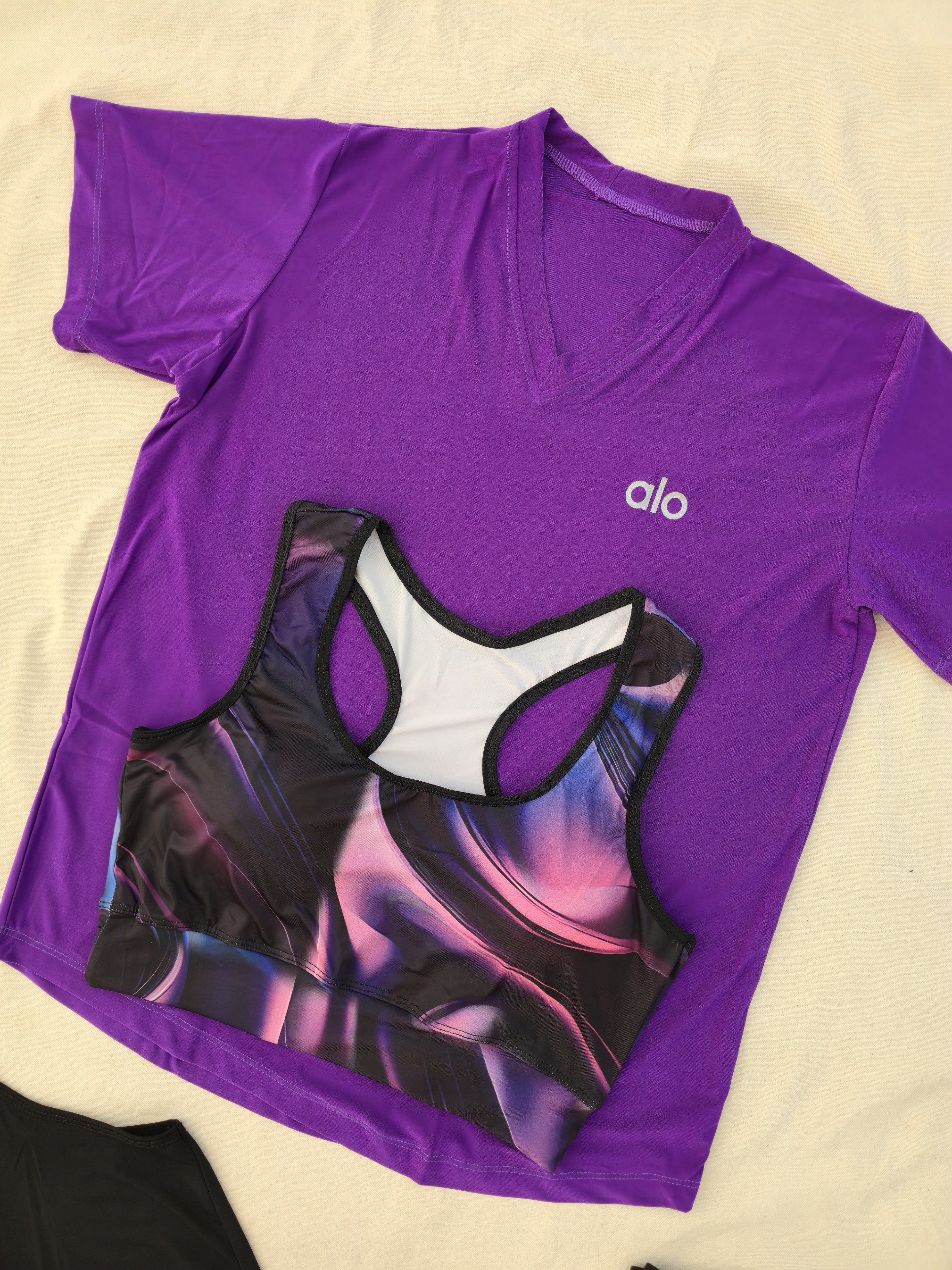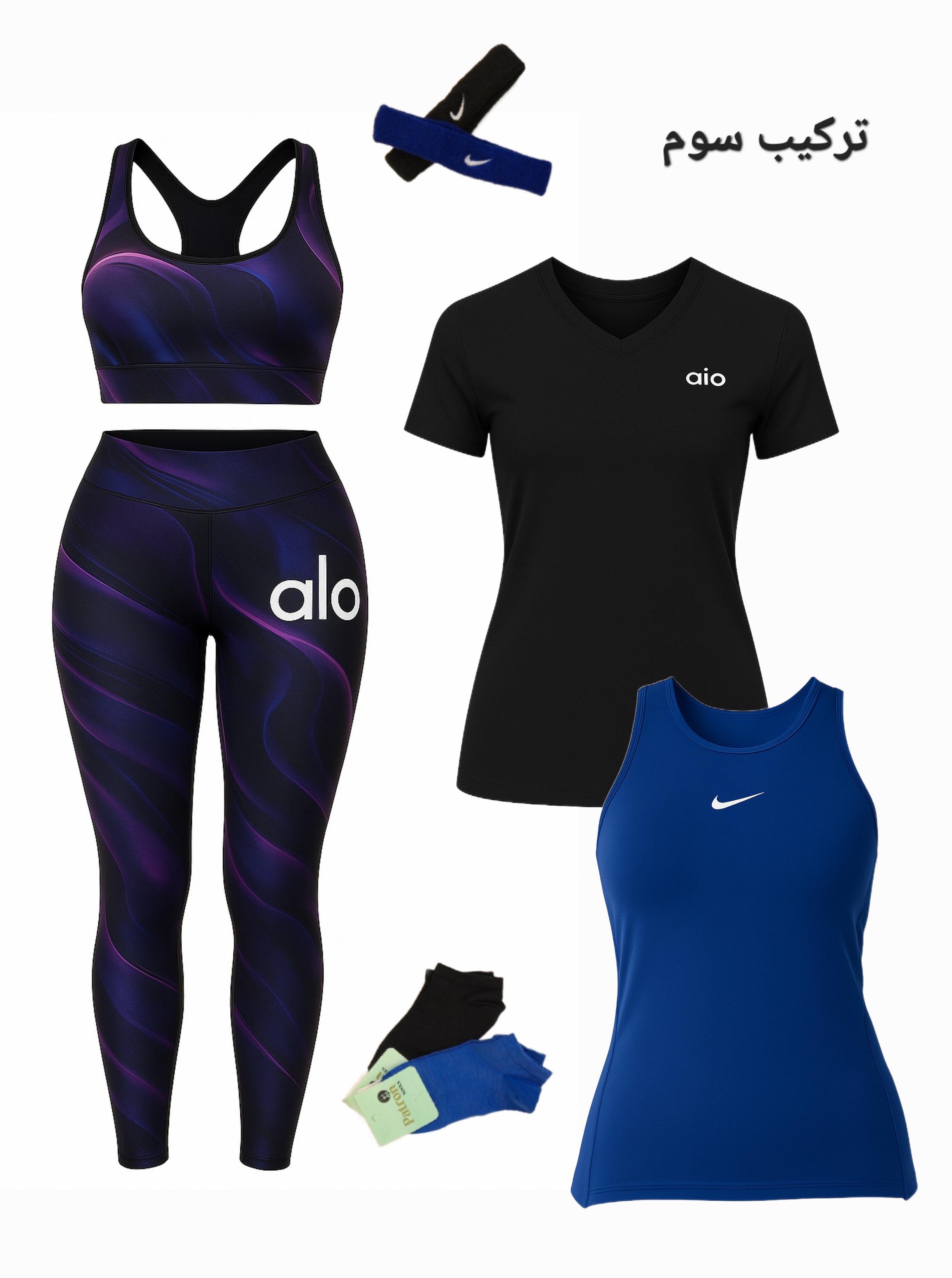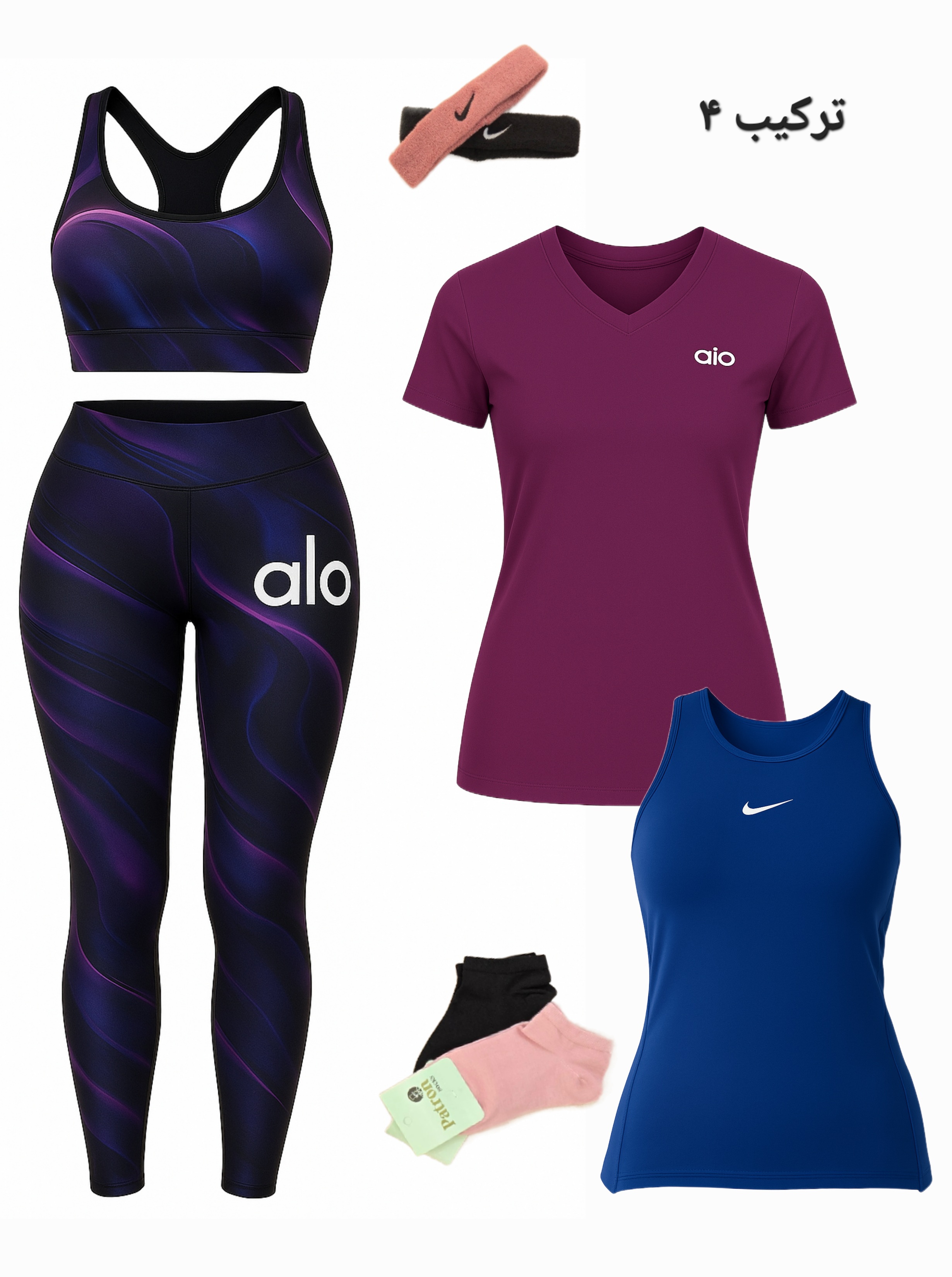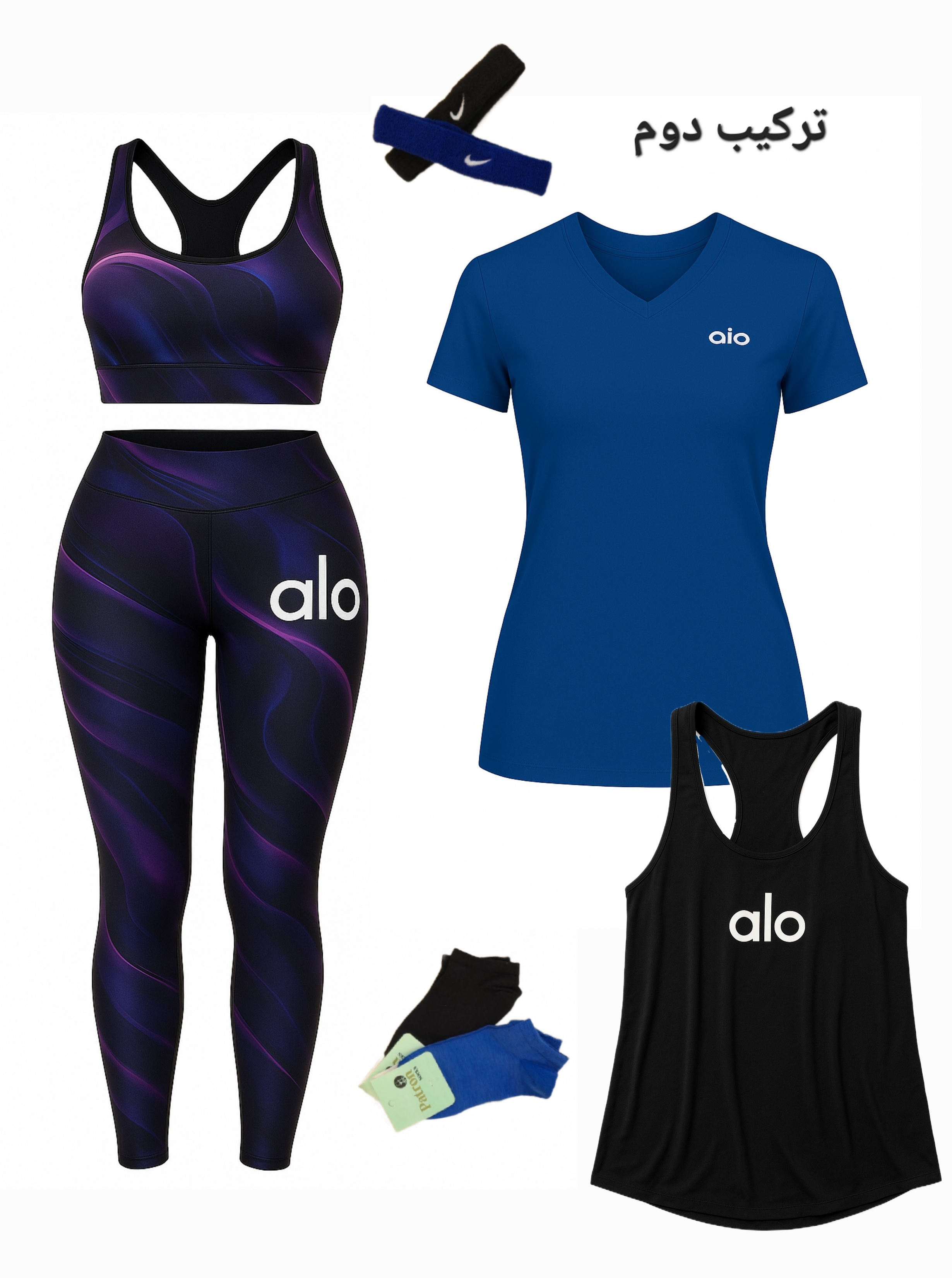 لباس ورزشی زنانه سایزبزرگ ۴۲ الی ۴۸ | ۶ تکه اقتصادی | نیمتنه، لگ ، کاور تاپ ، تیشرت ، جوراب ، هدبند |