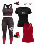 لباس ورزشی زنانه سایز ۳۶ الی ۴۲ | ۶ تکه اقتصادی | نیمتنه، لگ ، کاور تاپ ، تیشرت ، جوراب ، هدبند |