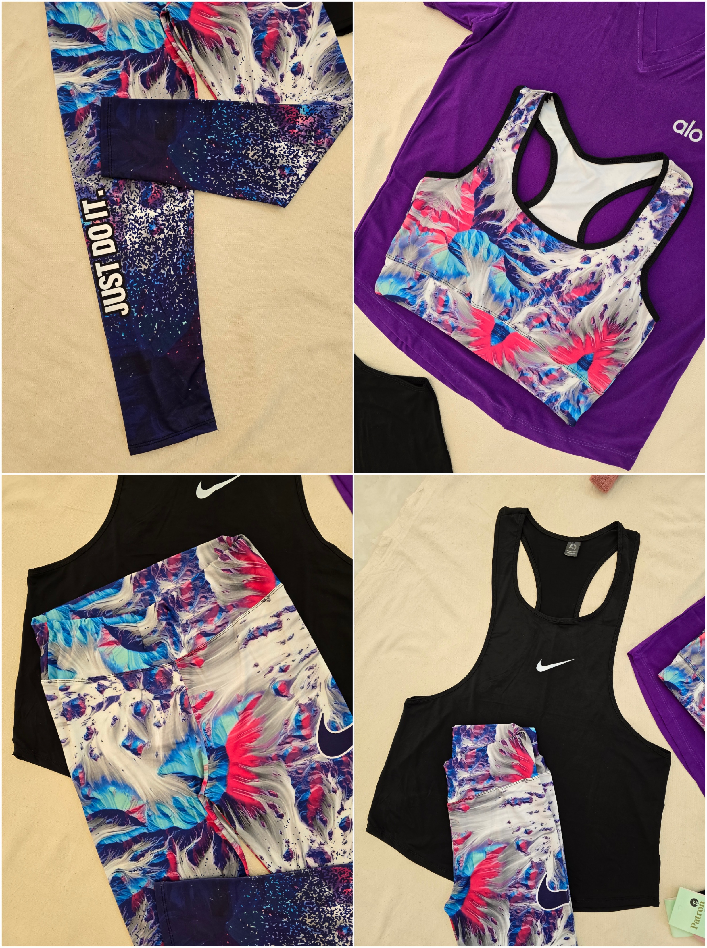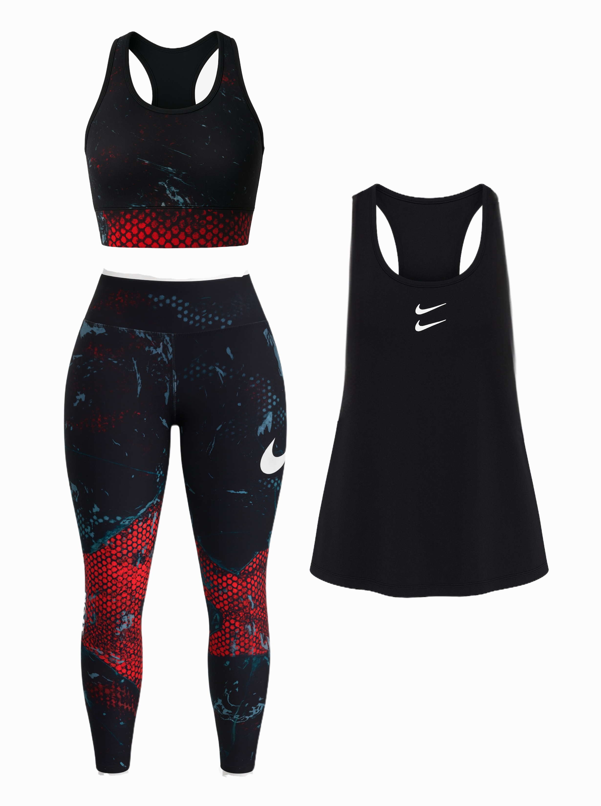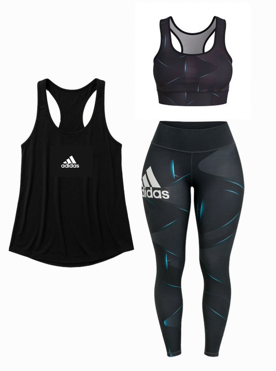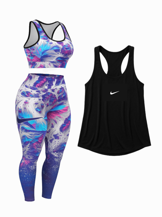 لباس ورزشی زنانه سایزبزرگ ۴۲ الی ۴۸ | ست سه تکه ورزشی / نیمتنه ، لگ ، کاور تاپ |