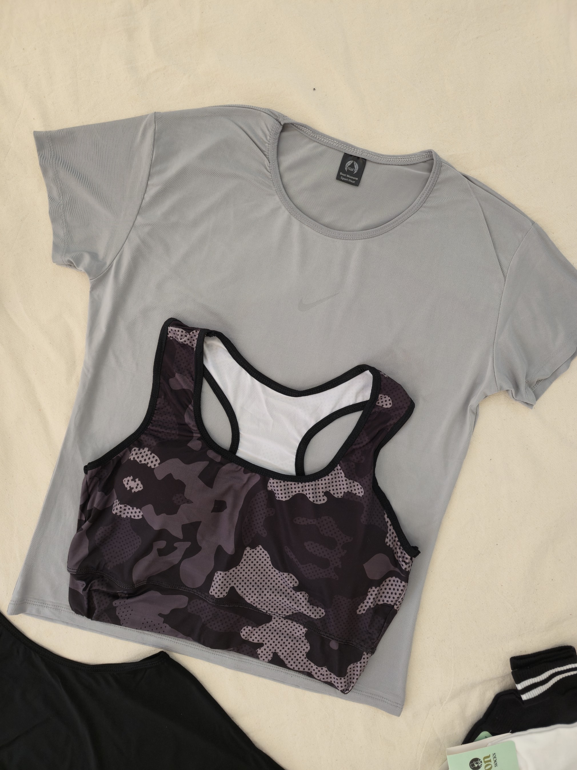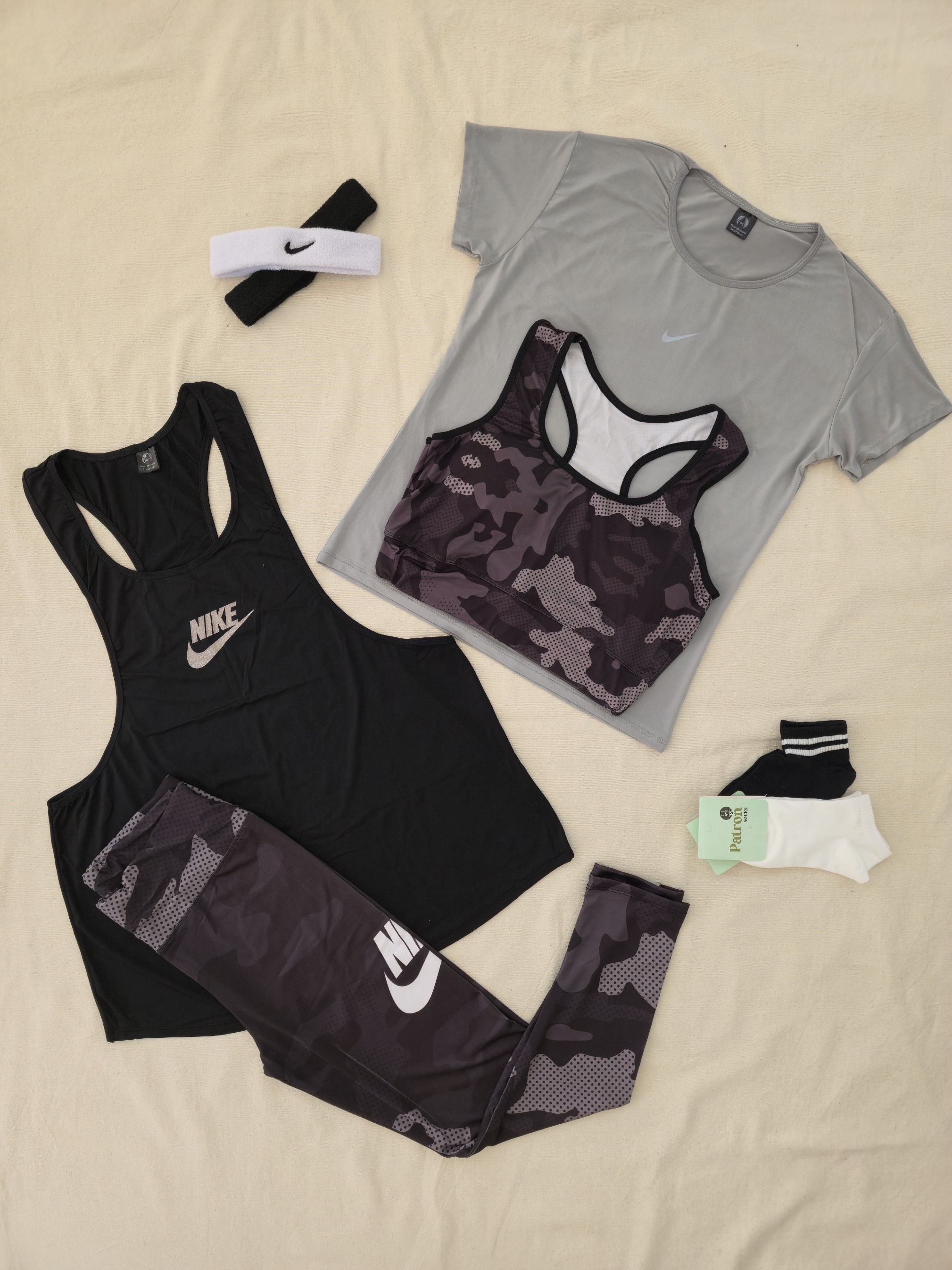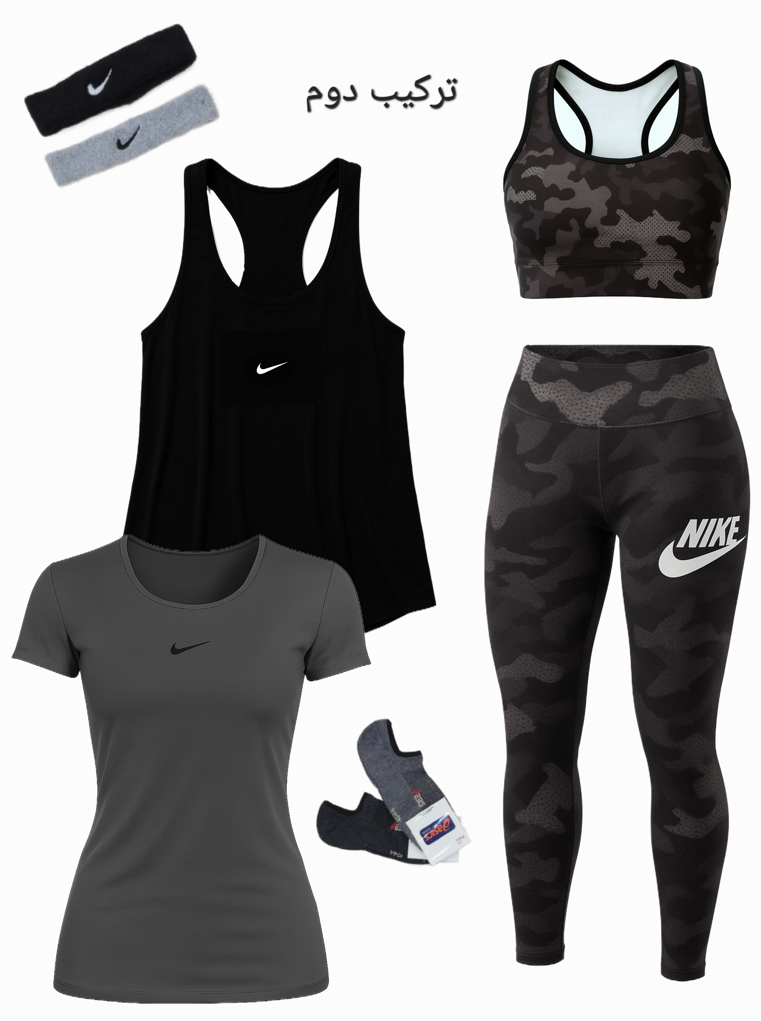 لباس ورزشی زنانه سایزبزرگ ۴۲ الی ۴۸ | ۶ تکه اقتصادی | نیمتنه، لگ ، کاور تاپ ، تیشرت ، جوراب ، هدبند |