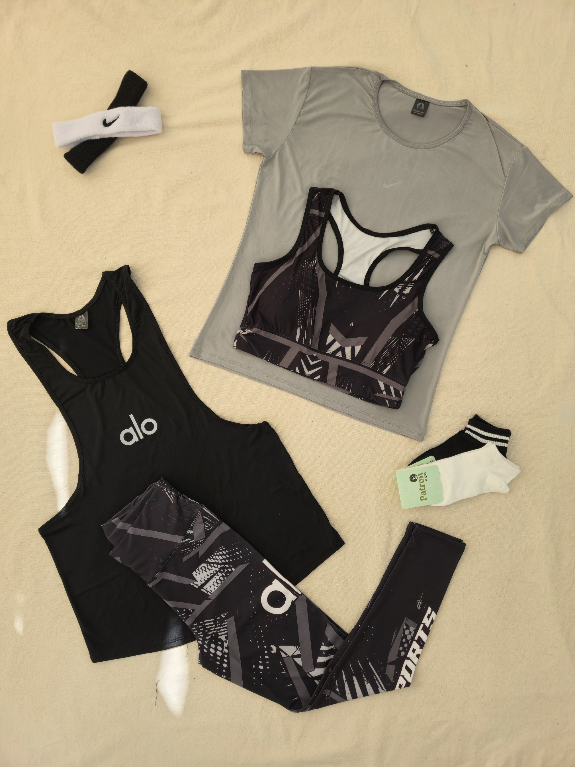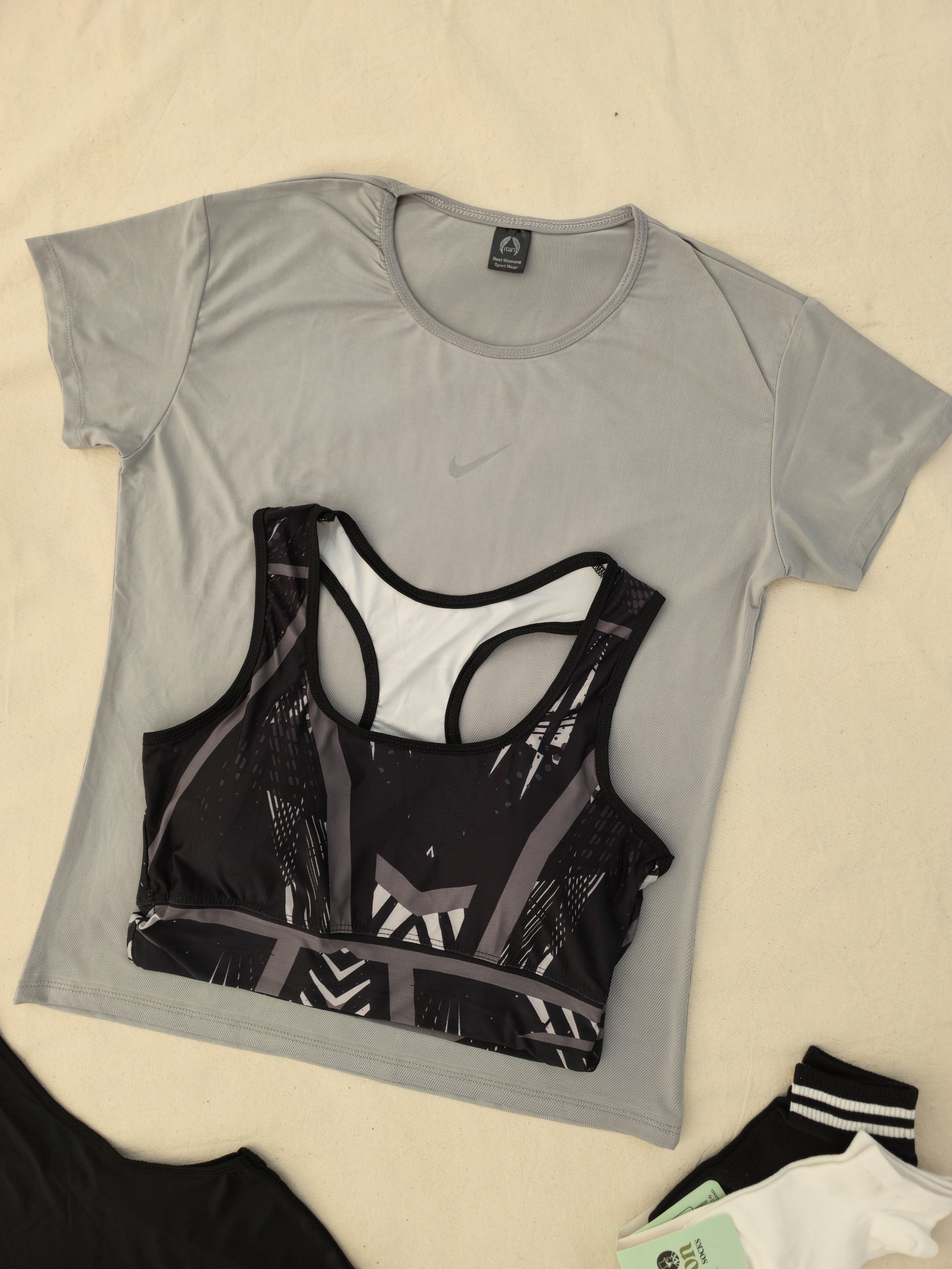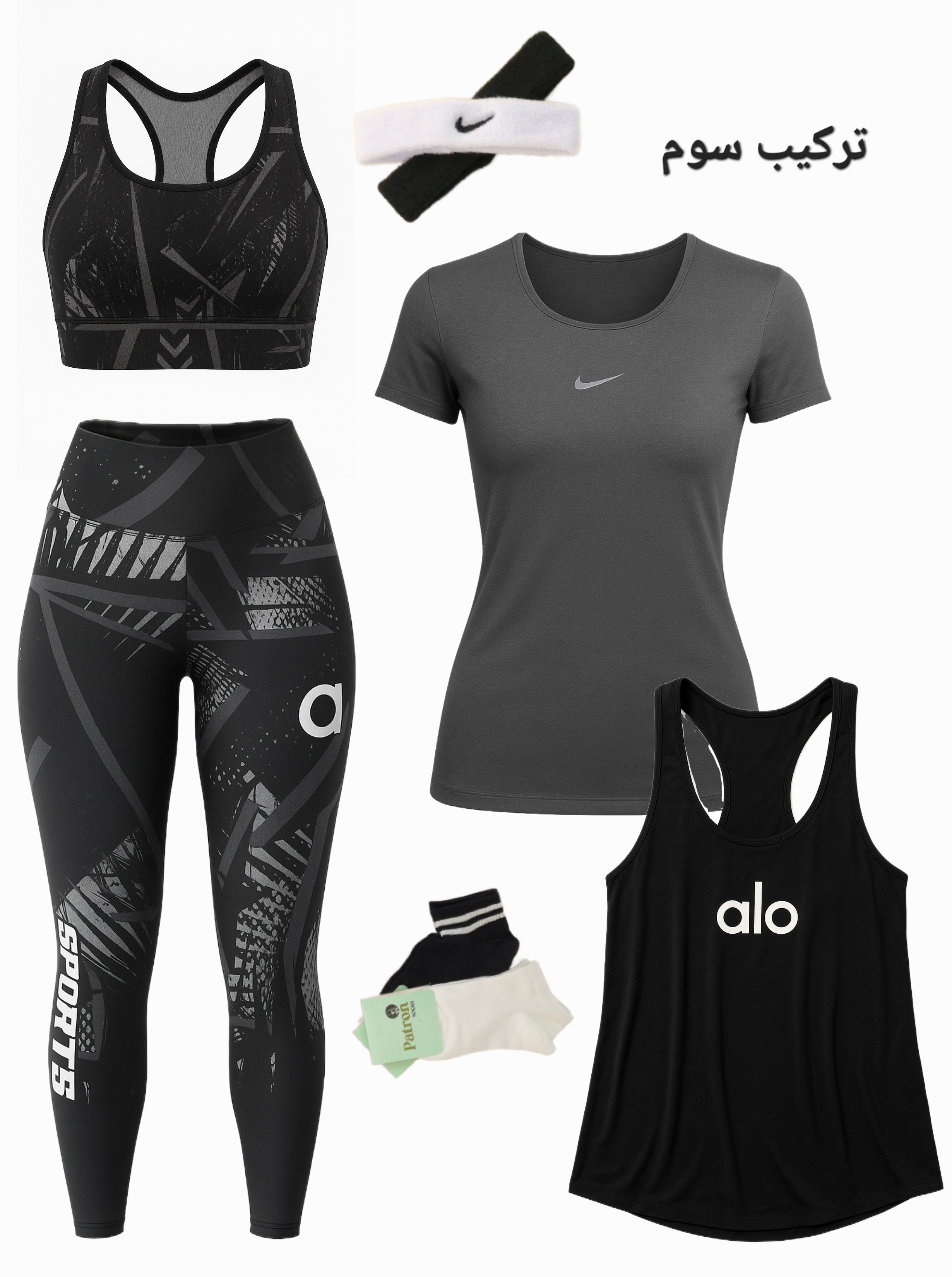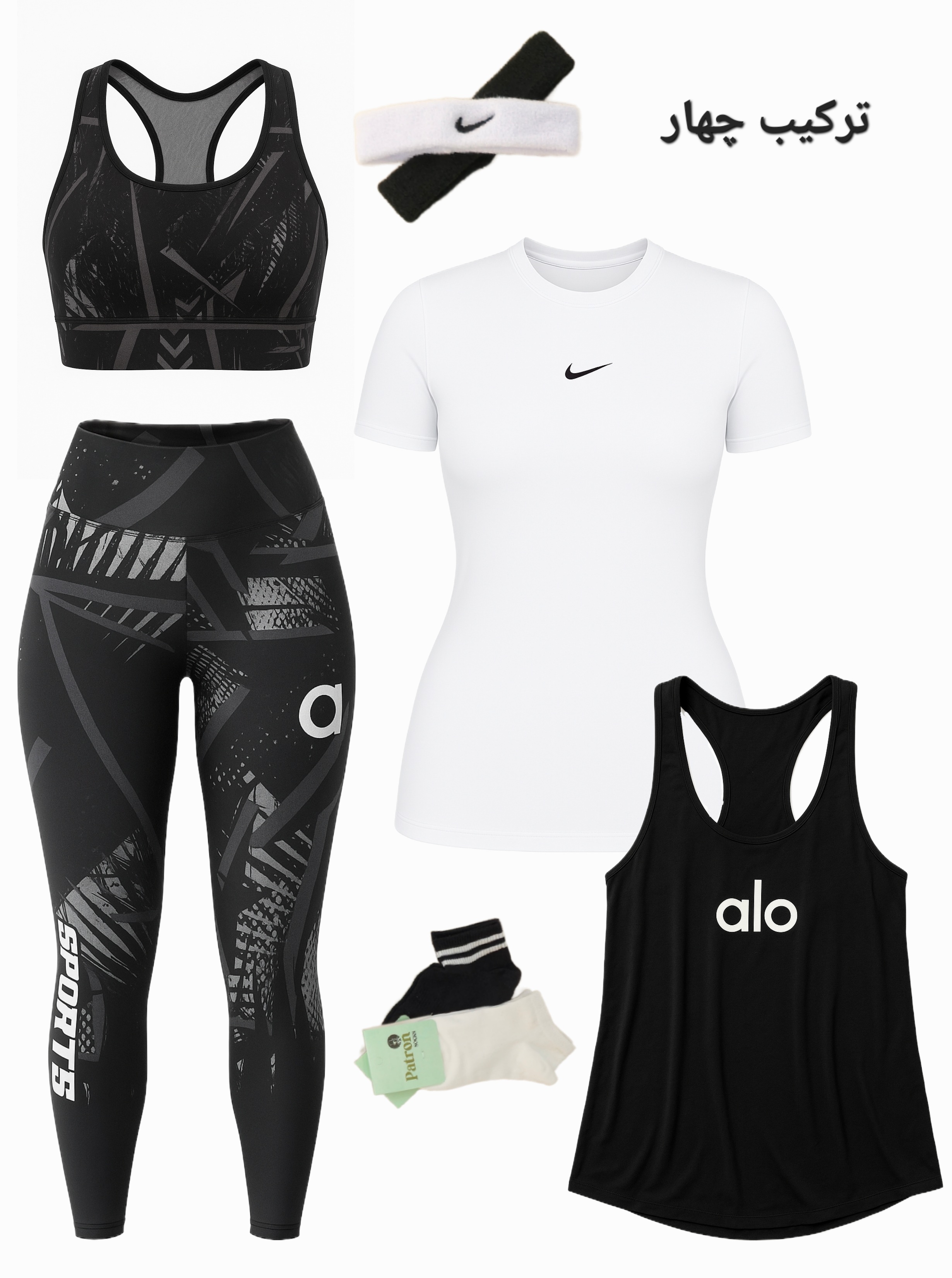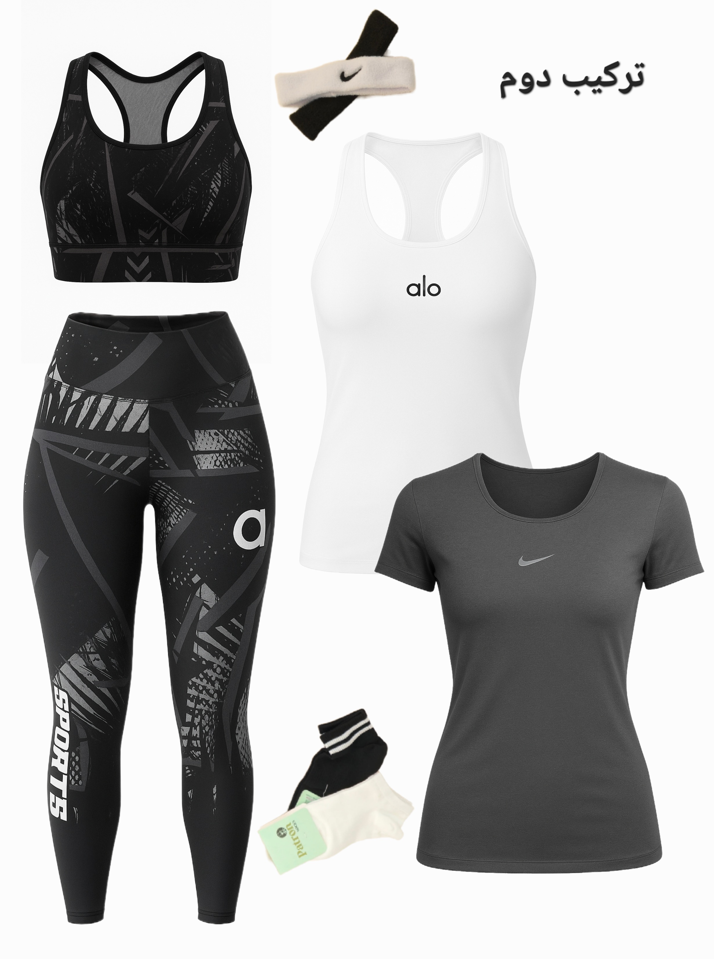 لباس ورزشی زنانه سایز ۳۶ الی ۴۲ | ۶ تکه اقتصادی | نیمتنه، لگ ، کاور تاپ ، تیشرت ، جوراب ، هدبند |