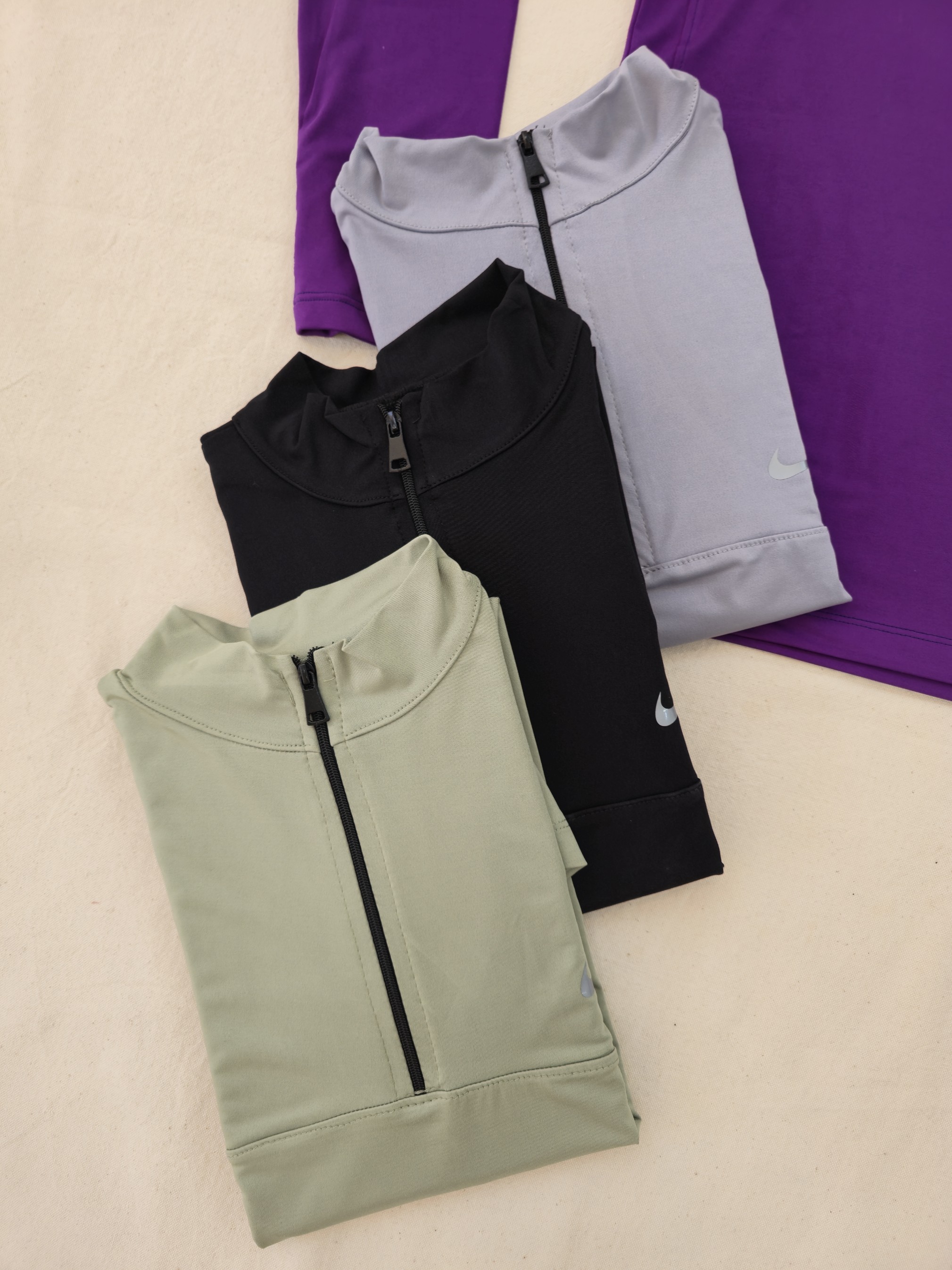 بلوز ورزشی زنانه سایز ۴۴ الی ۵۲ مدل یقه نیم زیپ و آستین فینگردار/ تیشرت آستین بلند