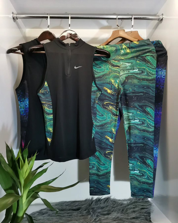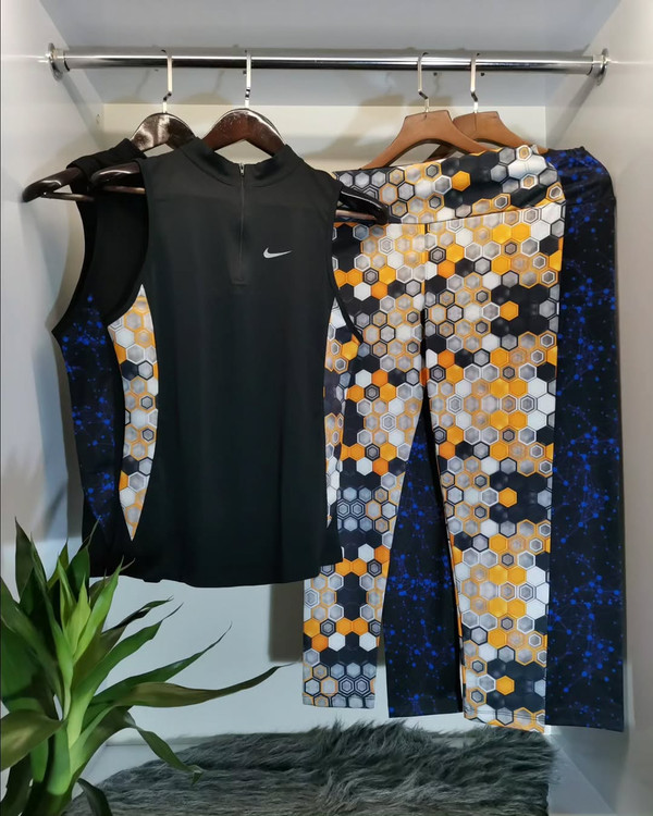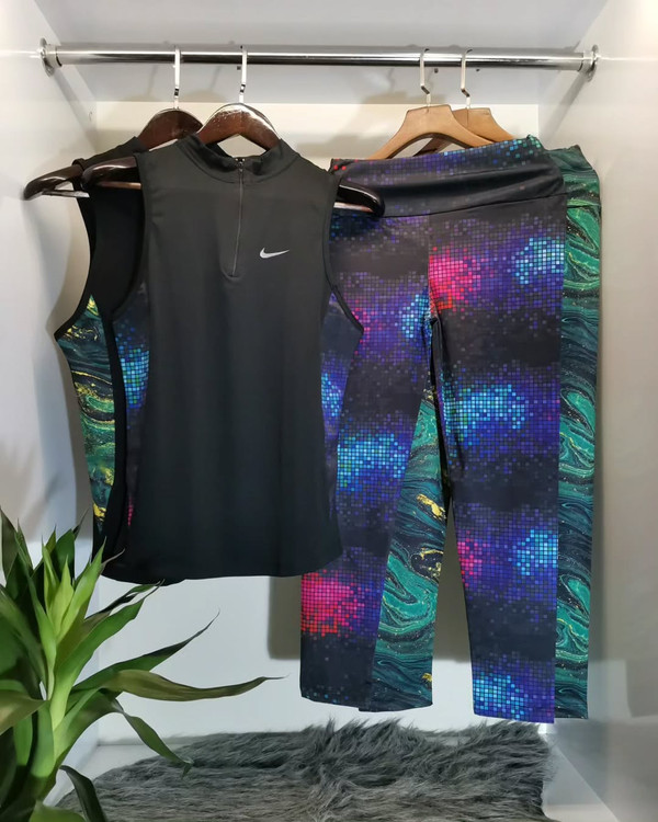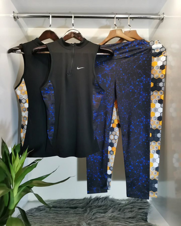 تاپ شلوار ورزشی زنانه سایز ۳۴ الی ۳۸ مدل نایکی | تاپ حلقه ای ، یقه نیم زیپ و لگ |
