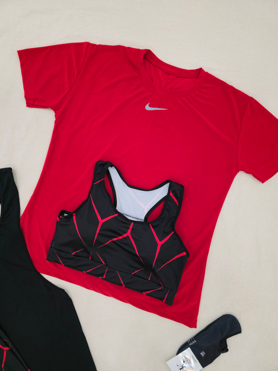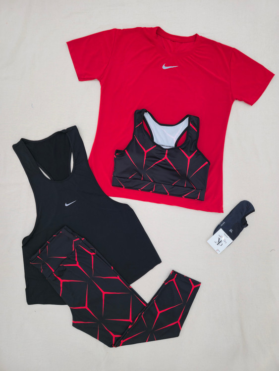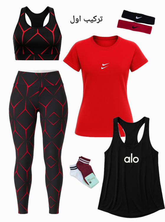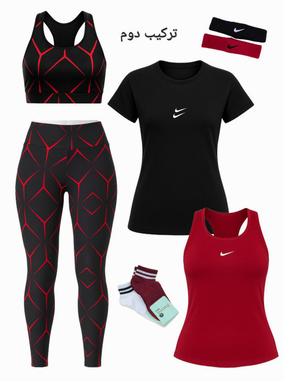 لباس ورزشی زنانه سایزبزرگ ۴۲ الی ۴۸ | ۶ تکه اقتصادی | نیمتنه، لگ ، کاور تاپ ، تیشرت ، جوراب ، هدبند |