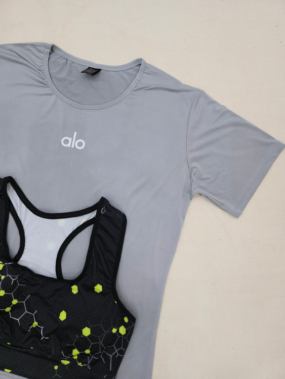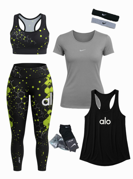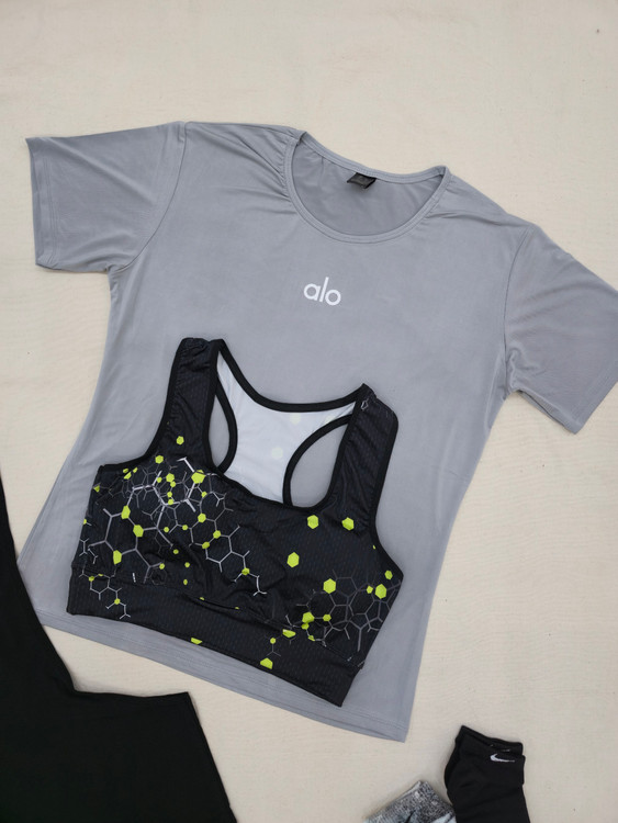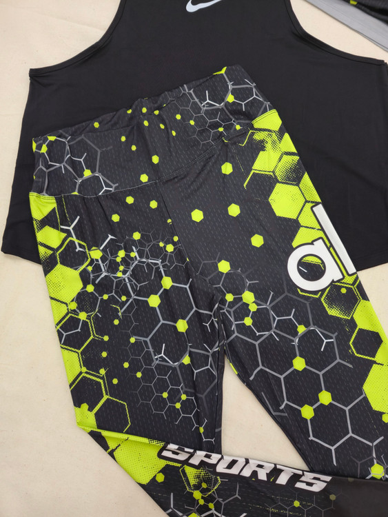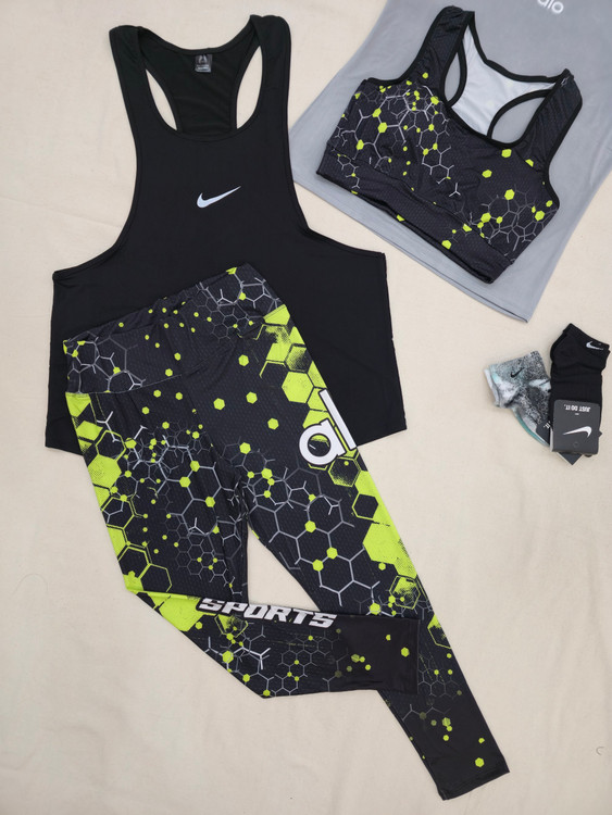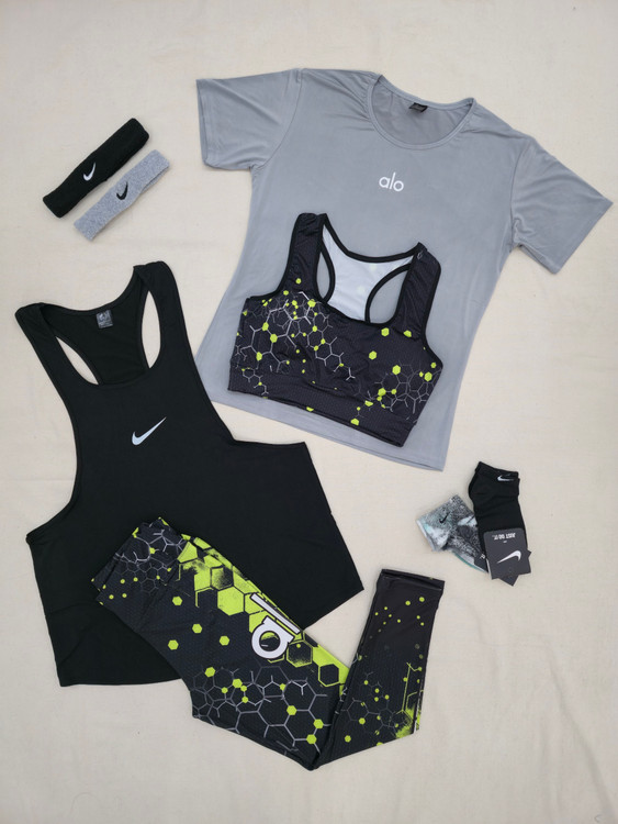 لباس ورزشی زنانه سایزبزرگ ۴۲ الی ۴۸ | ۶ تکه اقتصادی | نیمتنه، لگ ، کاور تاپ ، تیشرت ، جوراب ، هدبند | کد ۱۳۰۴