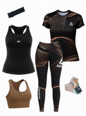 لباس ورزشی زنانه سایزبزرگ ۴۰ الی ۴۸ | ۶ تکه اقتصادی | نیمتنه، لگ ، کاور تاپ ، تیشرت ، جوراب ، هدبند |