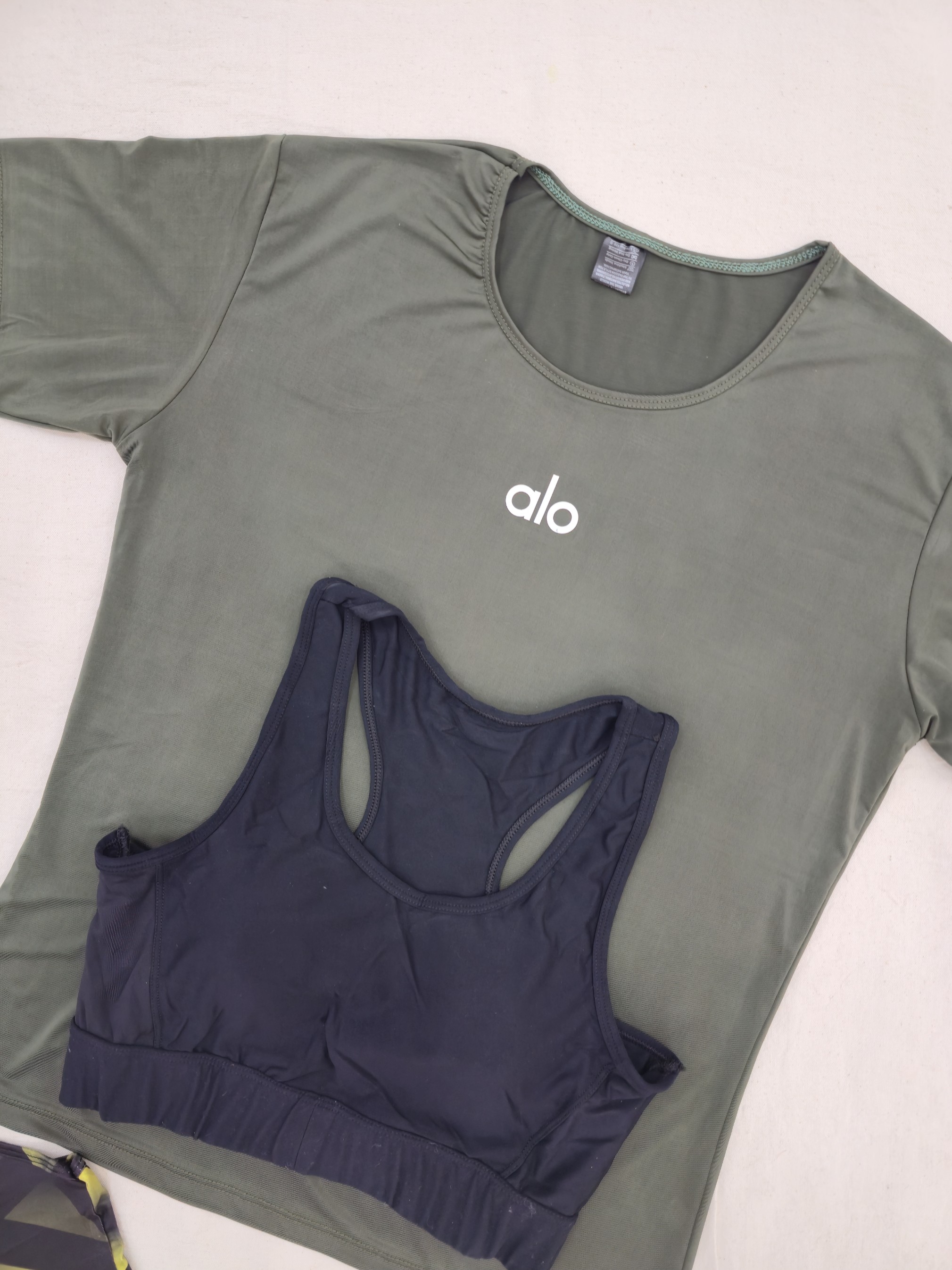 لباس ورزشی زنانه سایز ۴۲ الی ۴۸ | ۶ تکه اقتصادی | نیمتنه، لگ ، تاپ ، تیشرت ، جوراب ، هدبند | کد ۱۳۱۶