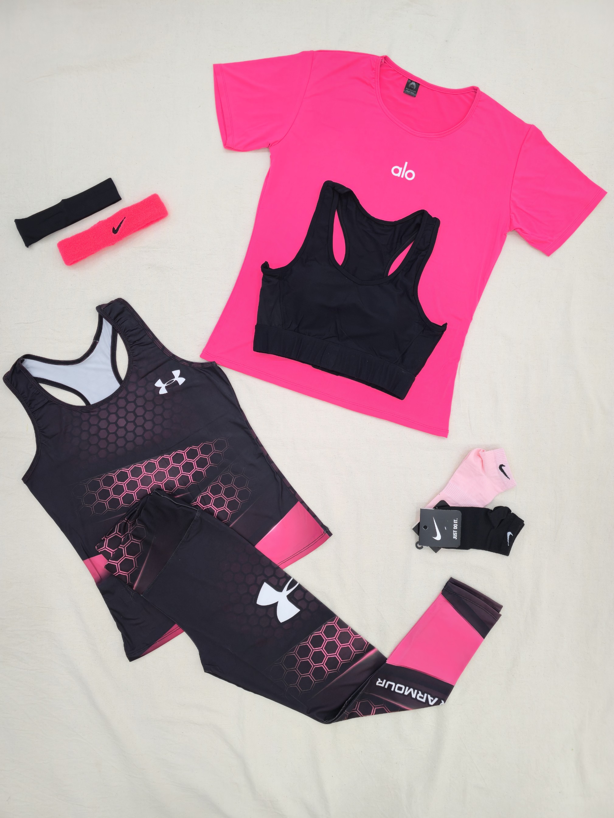 لباس ورزشی زنانه سایز ۴۲ الی ۴۸ | ۶ تکه اقتصادی | نیمتنه، لگ ، تاپ ، تیشرت ، جوراب ، هدبند | کد ۱۳۲۲