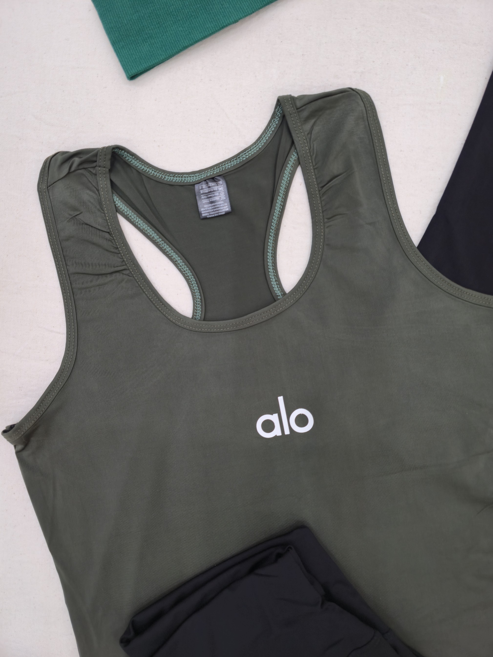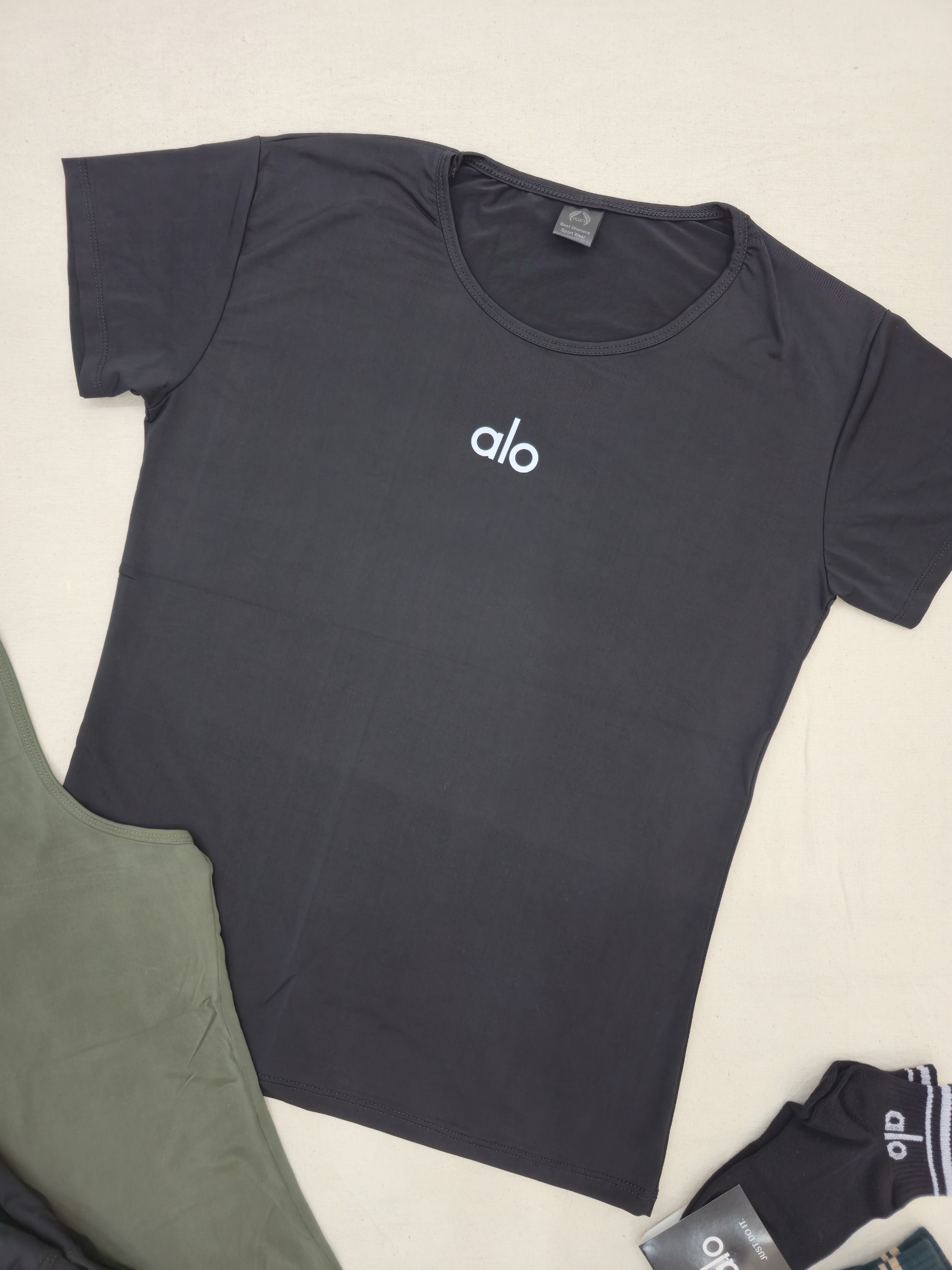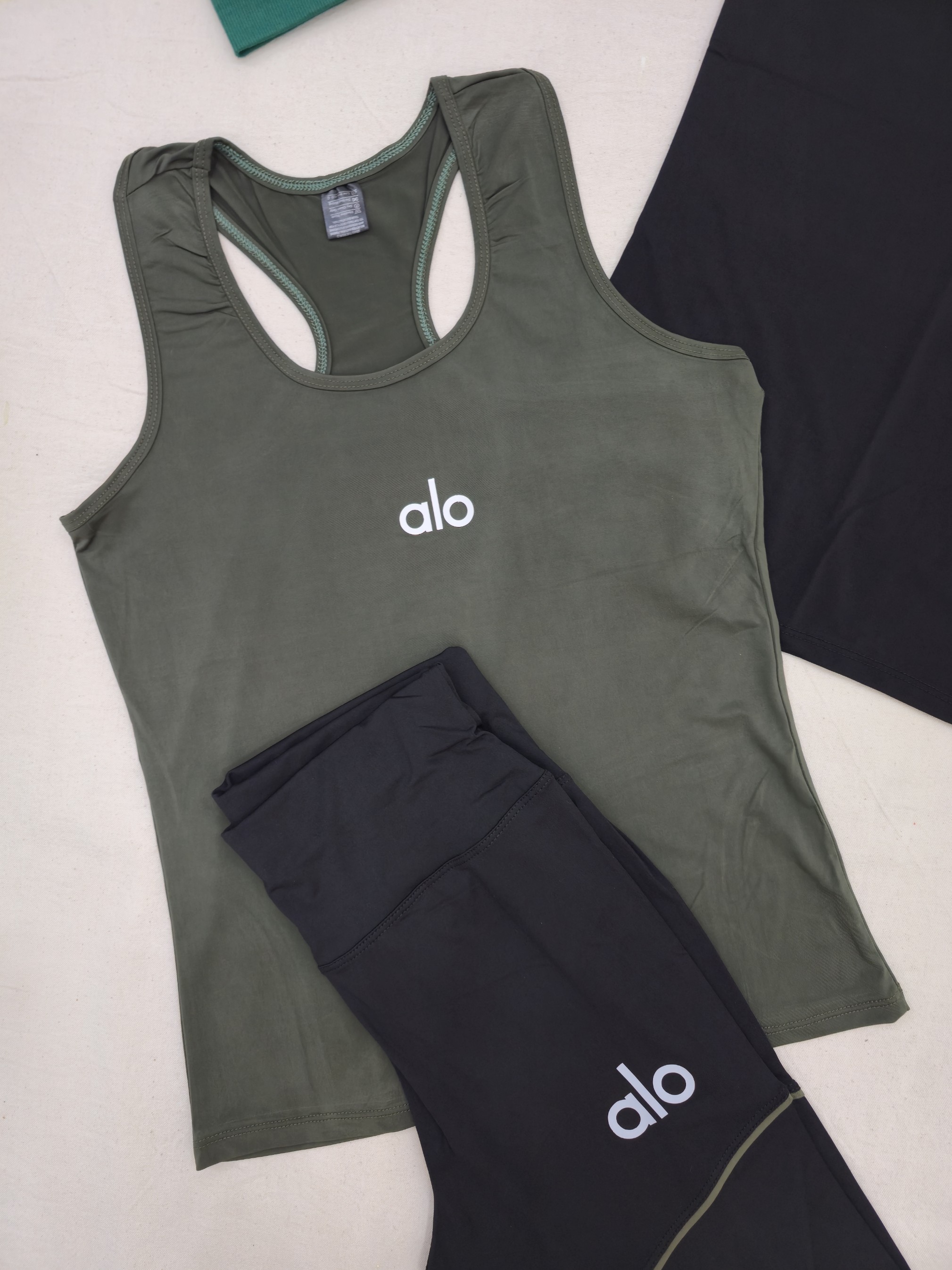 لباس ورزشی زنانه سایز ۳۶ الی ۴۲ | ۷ تکه پیشنهاد اقتصادی | تاپ قهرمانی، تیشرت، لگ ، جوراب ، هدبند | ست ورزشی سبز ارتشی