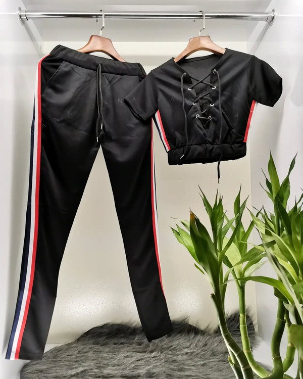 کراپ شلوار ورزشی زنانه دخترانه سایز ۳۴ الی ۳۶ |کراپ تیشرت ریبندی و شلوار |