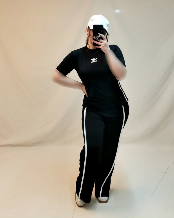ست دو تکه ورزشی | تیشرت و شلوار بقل خط دار |